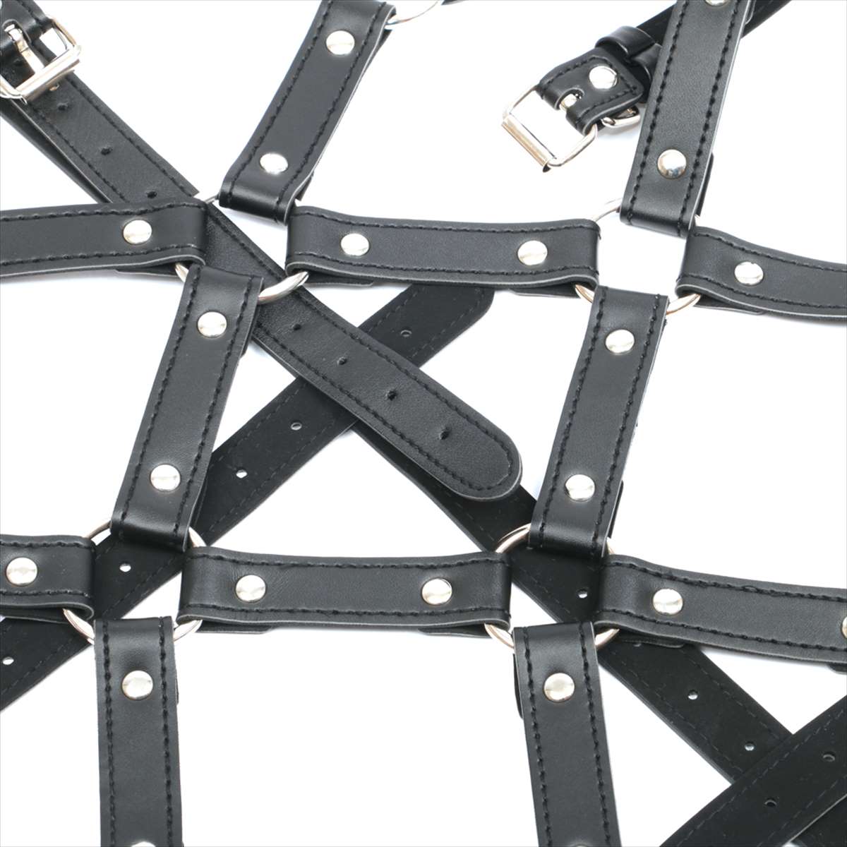 緊縛で最も美しく人気の亀甲縛りをボンテージハーネスで簡単かつスタイリッシュに格好良く実現しました。本格プレイにもコスプレにも利用できる完成度!ハイクオリティーで柔らかいベルト素材は装着時の痛みを軽減してくれ初心者の方からマニアの方まで安心安全にお使いいただけます。バスト、ウエスト、丈、二の腕、手首、各ベルトは長さを自由に調節できるので体型を選ばず締め込んでの使用も可能です。 サイズ:フリーサイズ
