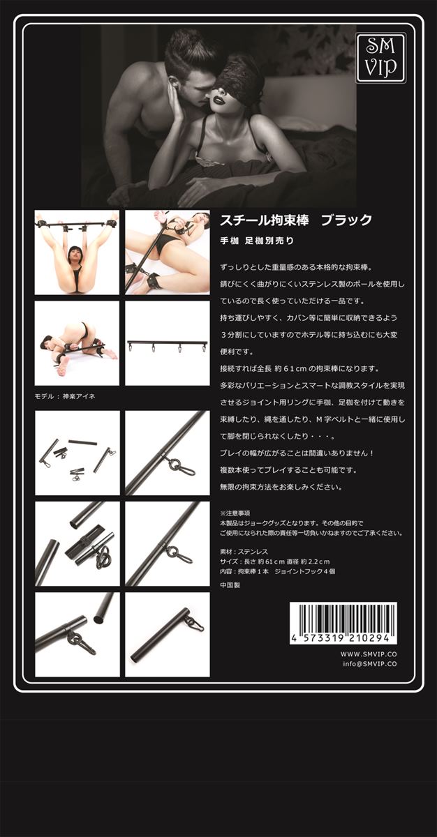 | 付属品: | 内容:拘束棒1本 ジョイントフック4個※手枷、足枷別売り素材:ステンレス | |
