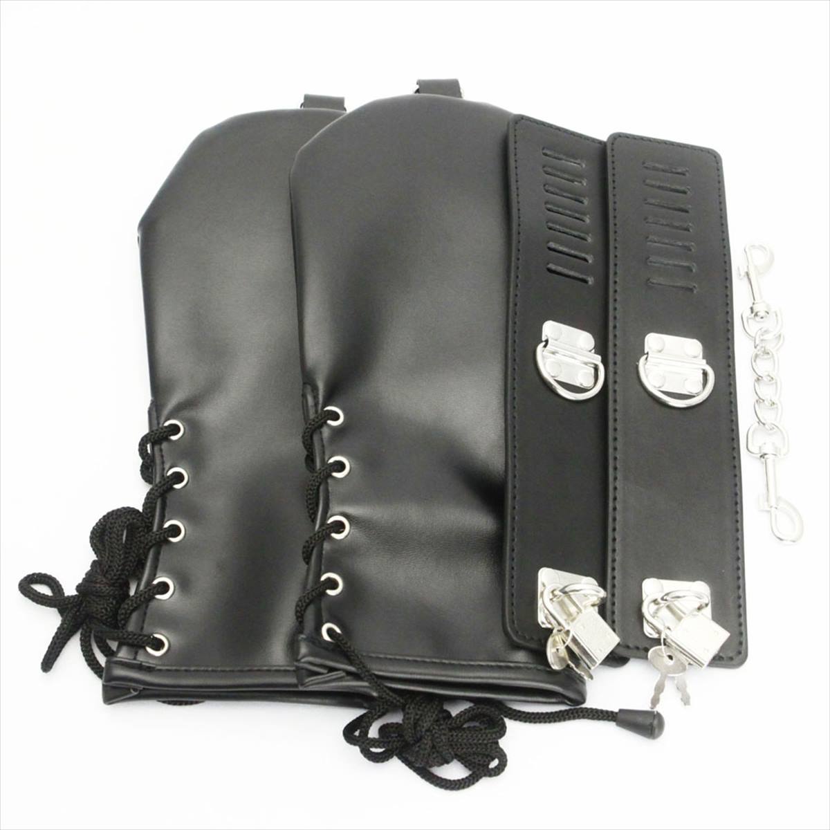 腕の動きを封じ込めたり、手の動きを制限する拘束プレイはSM愛好家に大人気です。他のボンテージ商品に取付けるなどしてお楽しみください。※本品はジョークグッズとなります。その他の目的でご使用された際の責任等は一切負いかねますのでご了承ください。素材 :合皮、金具