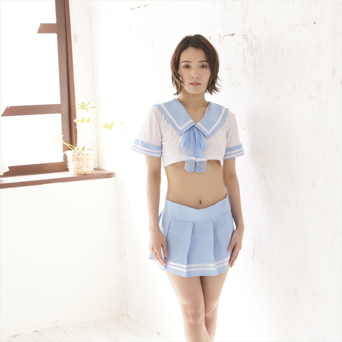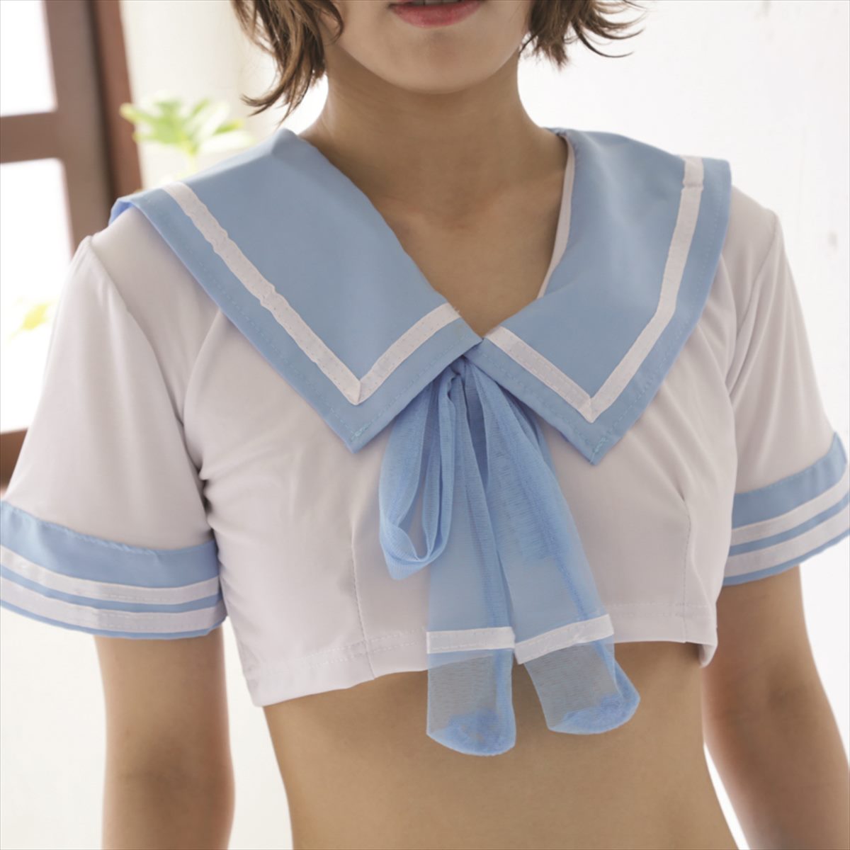 へそだしでセクシーにアレンジした超ミニ丈タイプのセーラー服!セット内容:ストレッチトップス、スカート、Tバック品質:ナイロン90% ポリウレタン10% スカートポリエステル100%