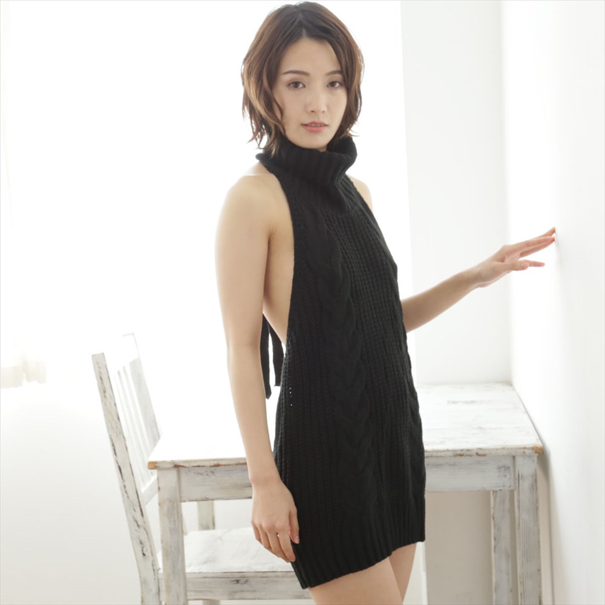 ざっくり開いた背中が超セクシー♪タートルネックでエロ可愛いデザイン。噂の全ての男性をイチコロにするニットセーターです!コスプレだけでは無く他の服とのコーディネートで普段着としても使用できます。素材:アクリル100%