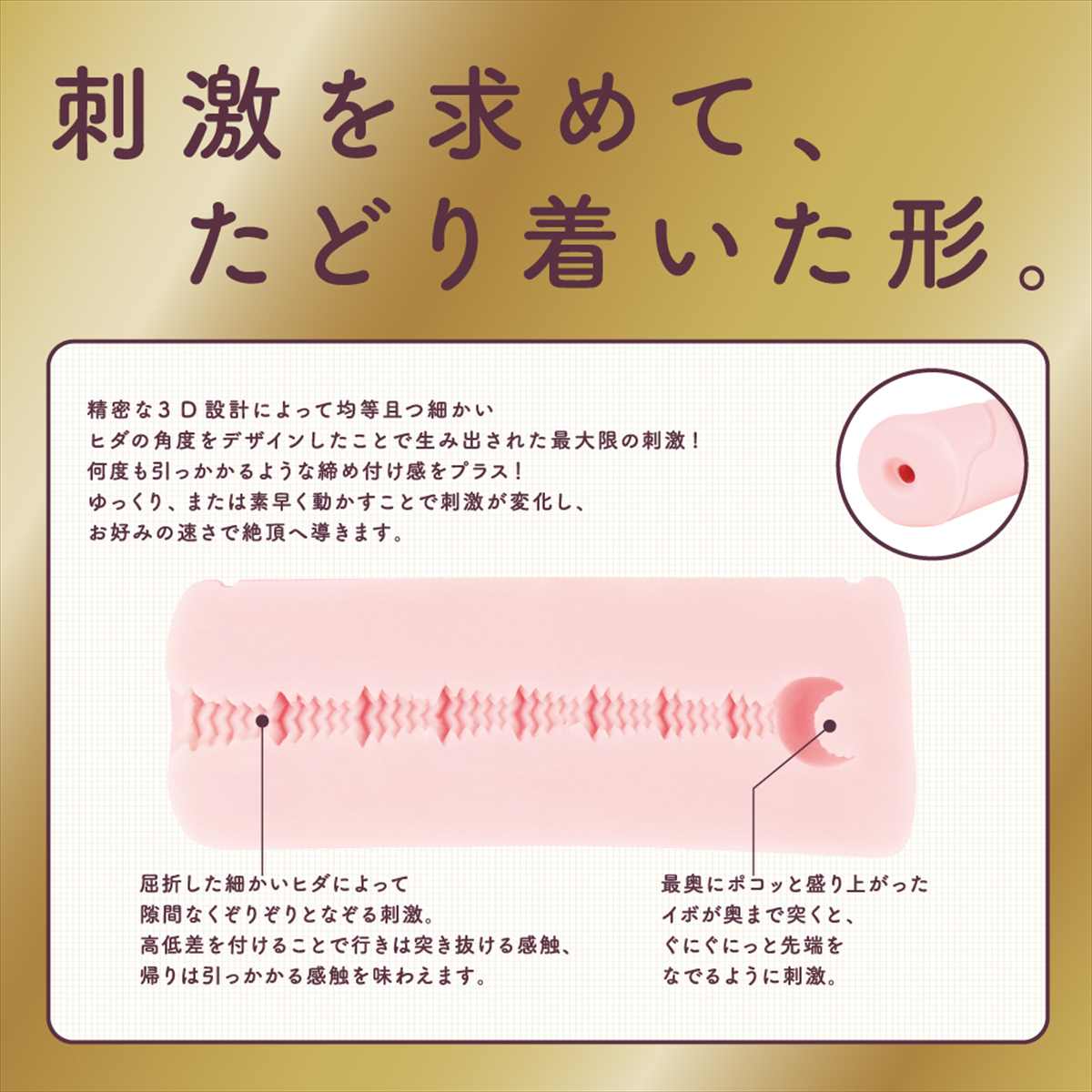 まったりでもリアルでもない、ただ求めるものは瞬間の絶頂!!抜き特化のオナホールが登場!何度も締め付けながらボコボコと突き抜ける感触を味わえるヒダの山!!精密な3D設計によって均等に且つ絶妙な角度であなたの先端を余すことなく刺激し、密着率を高めた強い締め付けで最高の快感を瞬時に提供、行きと帰りで刺激感が変わる為、好みのストロークで絶頂へ導きます。検査番号:2203336