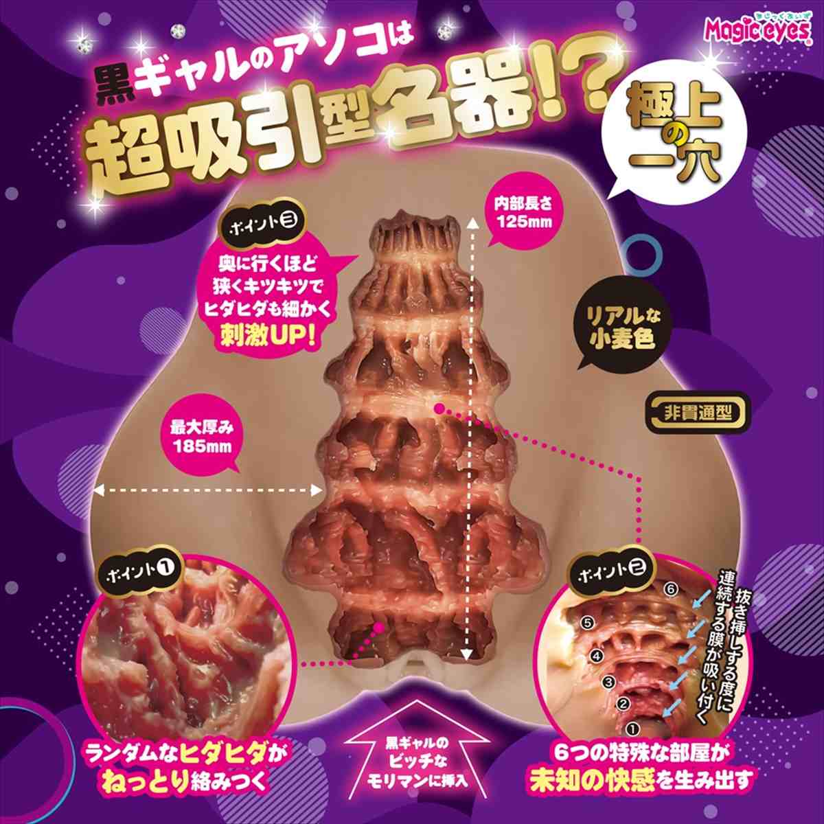 日焼け肌のエロ尻1600g、黒ギャル愛好家に捧ぐ究極の尻が遂に完成!!6つに分かれた部屋は奥に行くほど狭くなりランダムなヒダがねっとり絡みつきます。内部長は125mmなのでしっかり奥まで突く事が出来、全幅175mmの大型ヒップは両手で持って様々な体位を体験できます。素材は厚労省告示食品衛生法基準第370号準拠した純日本製。ローション付属