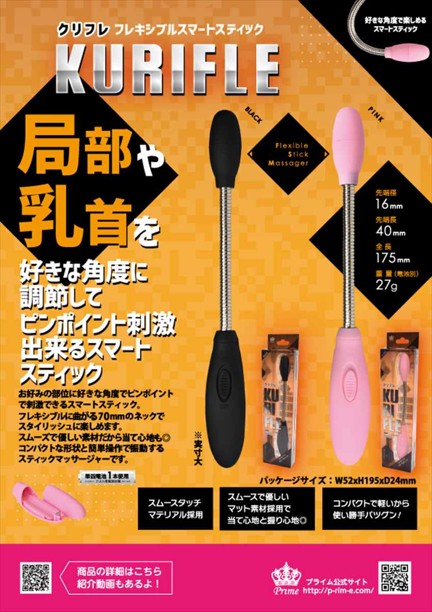 お好みの部位に好きな角度でピンポイント刺激出来るスマートスティック。フレキシブルに曲がる70mmのネックでスタイリッシュに楽しめます。スムースで優しい素材だから当て心地も◎。コンパクトな形状と簡単操作で振動するスティックマッサージャーです。