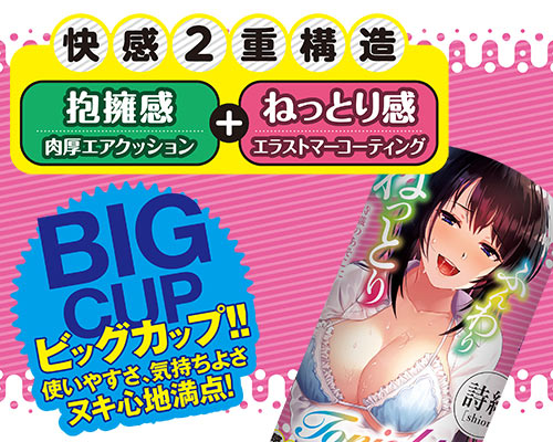 使いやすさ、気持ちよさ、ヌキ心地満点!!ワンコインビッグカップ「トゥナイト 詩織」登場!!肉厚エアクッションとエラストマーの2重構造で、抱擁感+ねっとり感のある名器を再現!!底部には重りが付いているので、ブレない安定感のあるストロークが可能に。発情中の爆乳ガールの名器に優しく包み込まれよう。【内部形状特徴】360度まんべんなく設置されたウェーブ形状の凹凸が、全体を優しく連続刺激。いつまでも蕩ける快感が続く・・・