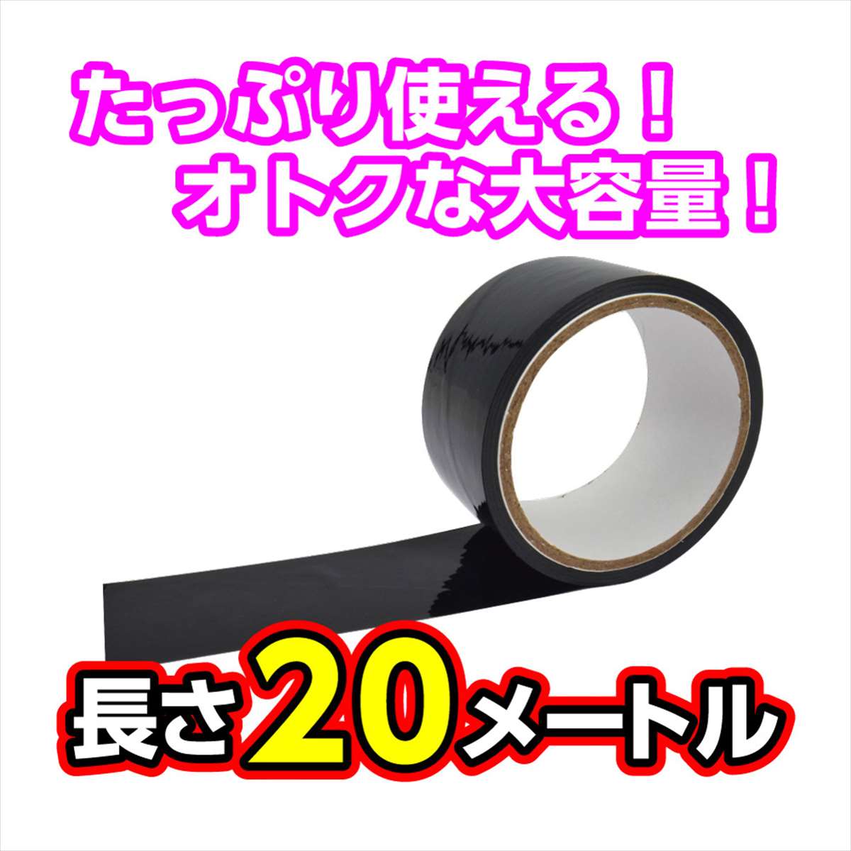 ソフトSMの必需品!貼って剥がせるSMテープが、お値段お安くなってリニューアル!静電気の力で接着するSM拘束用テープ、「ボンデージテープDX」!接着剤や糊などは使用しない、静電気でくっつくビニールテープです。気兼ねなくグルグル巻き付けるだけで、本格的な緊縛拘束プレイをお楽しみいただけます。静電気式なので、終わった後はクルクルと巻き取るだけ。貼り直しもカンタンなので、何度もご使用いただけます。接着剤不使用なので、ベタつきや粘着跡はありません。お肌や髪の毛やデリケート箇所にも安心してご使用いただけます。また、身体だけでなく、家具やグッズにも使用可能。椅子などに縛り付ける拘束プレイや、おもちゃを巻き付ける固定プレイなど、多彩なプレイバリエーションを楽しめます!テープの長さは20メートル。たっぷりあるので、贅沢にお使いください!誰でも簡単に緊縛SMプレイが楽しめる♪手枷、足枷、目隠し、拘束、器具固定、ボンデージファッションなどなどさまざまな用途でお楽しみください!※本テープは接着剤不使用です