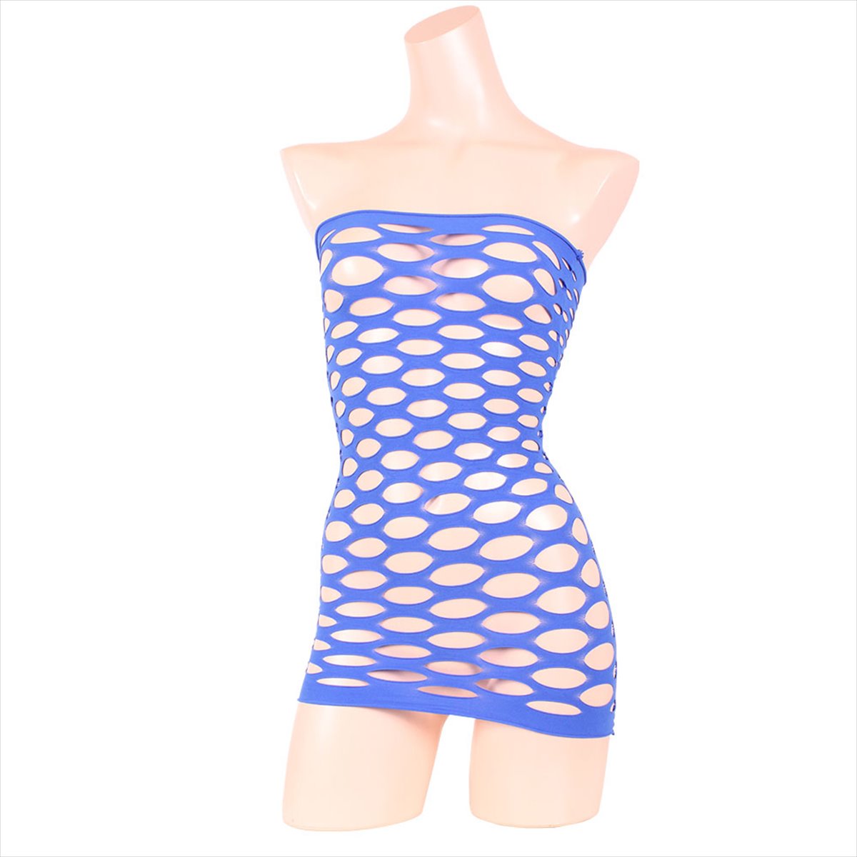 シンプルなデザインなのに個性を引き立たせる珠玉のエレガンスネットボディコン。都会的なムードを演出するブルー。