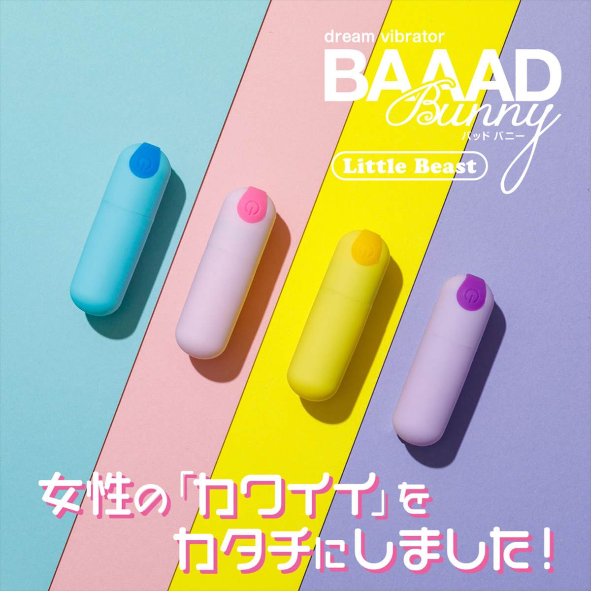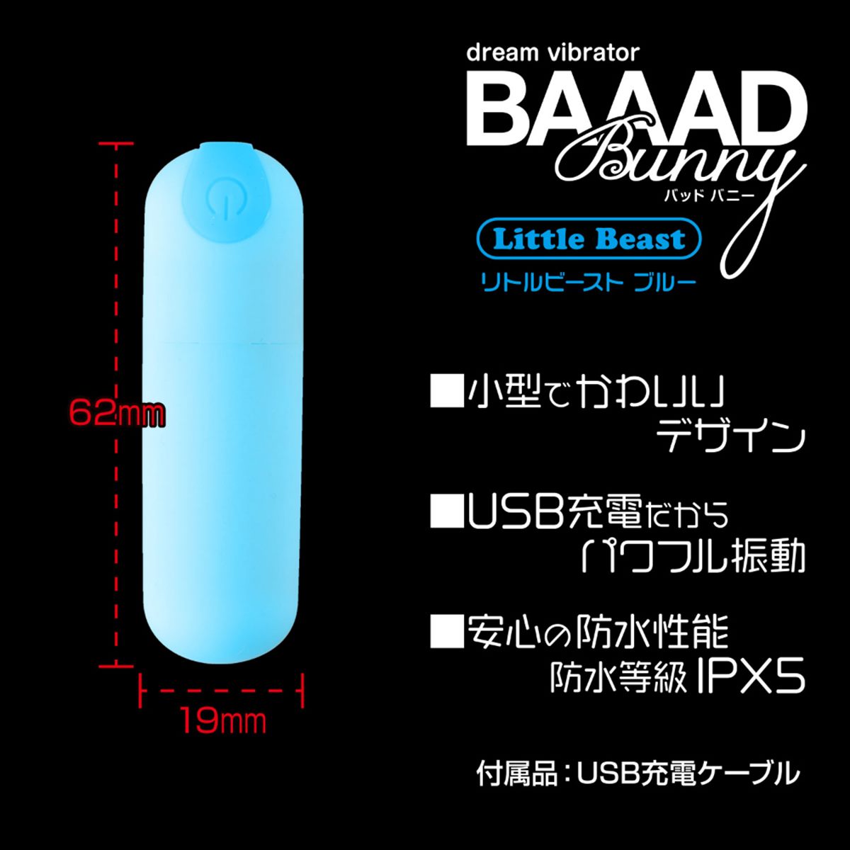 女性の好みを追求し誕生したバッドバニー・シリーズ。今度はかわいいデザインとパワフルな振動のミニサイズ・ローターが登場。女性の「欲しい」を形にしました。このリトルビーストはかわいくパワフルなローターです。女性の好きなカラーで展開し、持っているだけで満足できるデザインに仕上げました。またソフトな肌触りと10種類(3段階の強弱と7パターンの振動)の振動を装備し、機能面でも充実しています。充電は付属のUSBケーブルで簡単・便利。使用後は水洗い可能な防水機能(IPX5)も完備し、清潔さを保ち続けます。可愛らしくてパワフル、安心の防水性能(IPX5)と充実のローター・バッドバニーリトルビースト。女性へのプレゼントにもオススメです。
