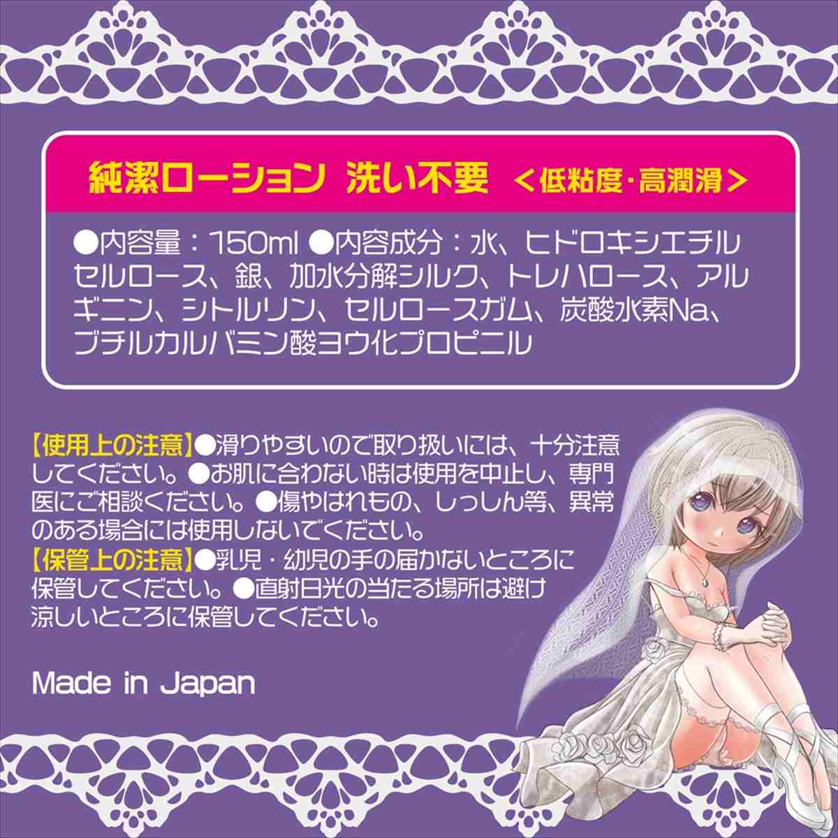 創世記をイメージした洗い不要タイプポリアクリル酸フリーな国産ローション。保湿成分の加水分解シルク、トレハロース、アルギニン、シトルリンも配合した万能型の潤滑ローションです。男性だけではなく女性にもサラッと拭き取るだけの処理で簡単にご使用頂けます。