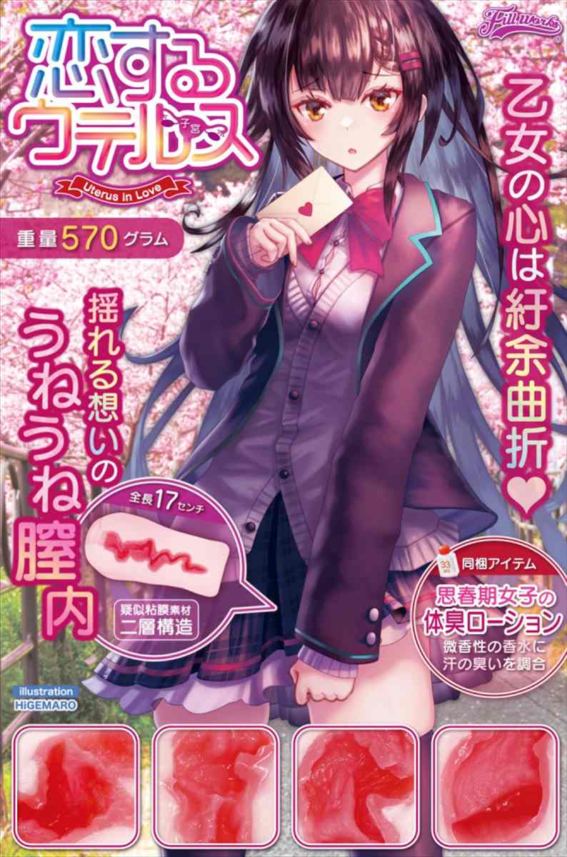 乙女の心は紆余曲折。揺れる想いのうねうねち●内”。「恋するウテルス」は内部構造が”波形ロード”タイプのオナホールです。縦方向にウネウネと上下するホールを「掻き分ける感触」が最大の魅力。上下に反発する”疑似粘膜素材”が、まるで進入を拒むかのように貴方を圧迫し、吸着します。ねっとりとまとわり付くヒダ快感をご堪能ください。ボディは、やわらかくしなやかな素材を試用した、重量570グラム・全長170ミリのミドルサイズ。扱いやすいサイズ感に加え、ゴム臭・ベタ付きを極限カットしたクリーン仕様ですので、長時間のプレイにも適したオナホールとなっています。恋するウテルスで「うねうねと揺れる紆余曲折な粘膜道」の感触をぜひご体験ください。微香性の香水に汗の臭いを配合した『思春期乙女の体臭ローション』付属。”