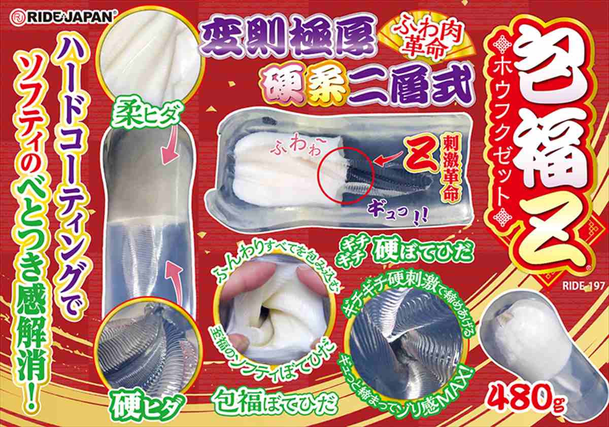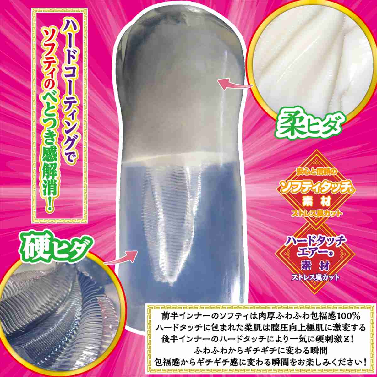 業界初!変則極厚硬柔二層でふわ肉革命。前半インナーのソフティは肉厚ふわふわ包福感100%ハードタッチに包まれた柔肌はチ〇圧極肌に激変する。後半インナーのハードタッチにより一気に硬刺激Z!ふわふわからギチギチに変わる瞬間。包福感からギチギチ感に変わる瞬間をお楽しみください。柔ぼてひだ、硬ぼてひだ、変則2種の硬柔ぼてひだ。ふんわりクッちゅり癒しの時ぎちぎちギュられて刺激の時包福Zで幸せ抱腹絶倒!