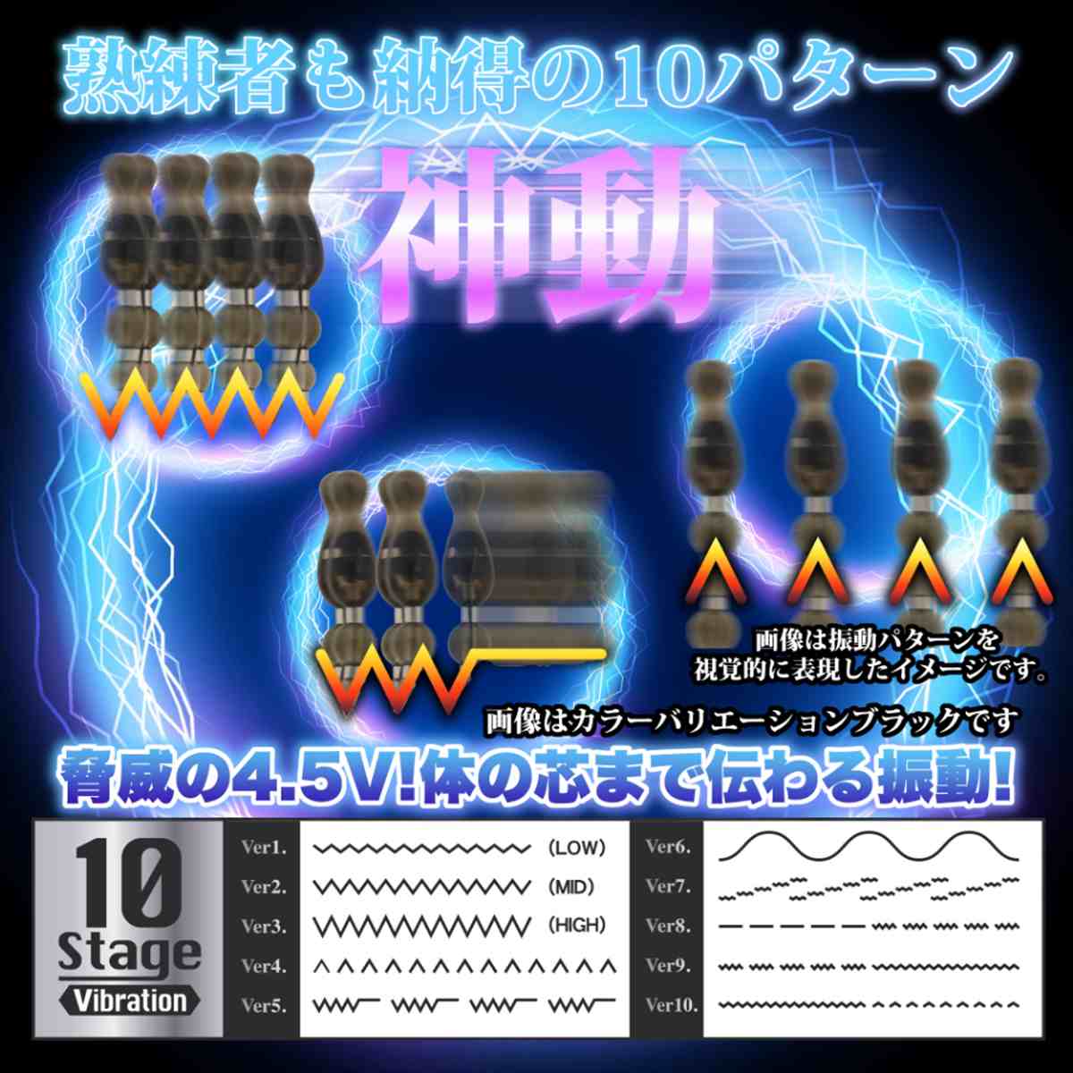 あなたのセクシャルライフに新たなアイテムの登場です!あなたを虜にするような10種類のファンクションを搭載し、その強烈な振動は、身体の奥深くにまで伝わり、きっとあなたを別世界へと誘うことでしょう。まるで映画のアクションシーンのように、この製品はあなたの中で動き回り、いろいろな場所を刺激し快感を高めます。快感のレベルがマックスに達したとき、脳天を直撃するような快感とともに、疲れた身体と心を日々の緊張感から一気に解放してくれます。ラテックス製でフレキシブルに曲がる素材と考え抜かれた形状は、身体にぴったりとフィットします。そして使うたびに身体と一体化したような快感を感じることでしょう。2人で使用するのも良し、アナニーに没頭するのもよし、あなたのセクシャルライフに新たな感動と快感そして展開をもたらすことまちがいありません!