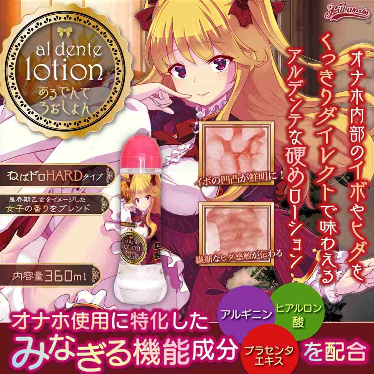 ねばドロHARDタイプ「あるて?んてろーしょん」はオナホ内部をくっきりダイレクトに味わえる「アルデンテ」な硬めローション。イボの凹凸が鮮明になり、繊細なヒダ感触もしっかり分かる「硬め粘度」で配合しました。成分には「アルギニン・ヒアルロン酸・プラセンタエキス」を調合。みなぎる機能成分でオナホ使用に最適なローションとなっています。加えて、思春期女子をイメージした「女子の香り」をブレンド。「あるて?んてろーしょん」は機能性に”萌えを併せ備えたハイブリッドなローションです。”