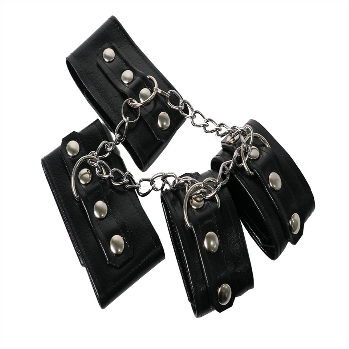 4つが1本の鎖でつながれているので”もどかしさ倍増。4つの枷が1本の鎖でつながれた手枷と足枷のジョイントセットです。1つの枷を引っ張ると他の枷も引っ張られるため、SM気分がさらに盛り上がります。ワンタッチ固定タイプなのでいざという時安心です。大手SMグッズ専門メーカーが制作したプロも愛用の手枷足枷セットです。職人が一つ一つ手作業で作った国産商品です。手入れも簡単です。”