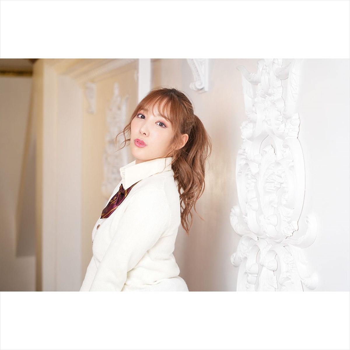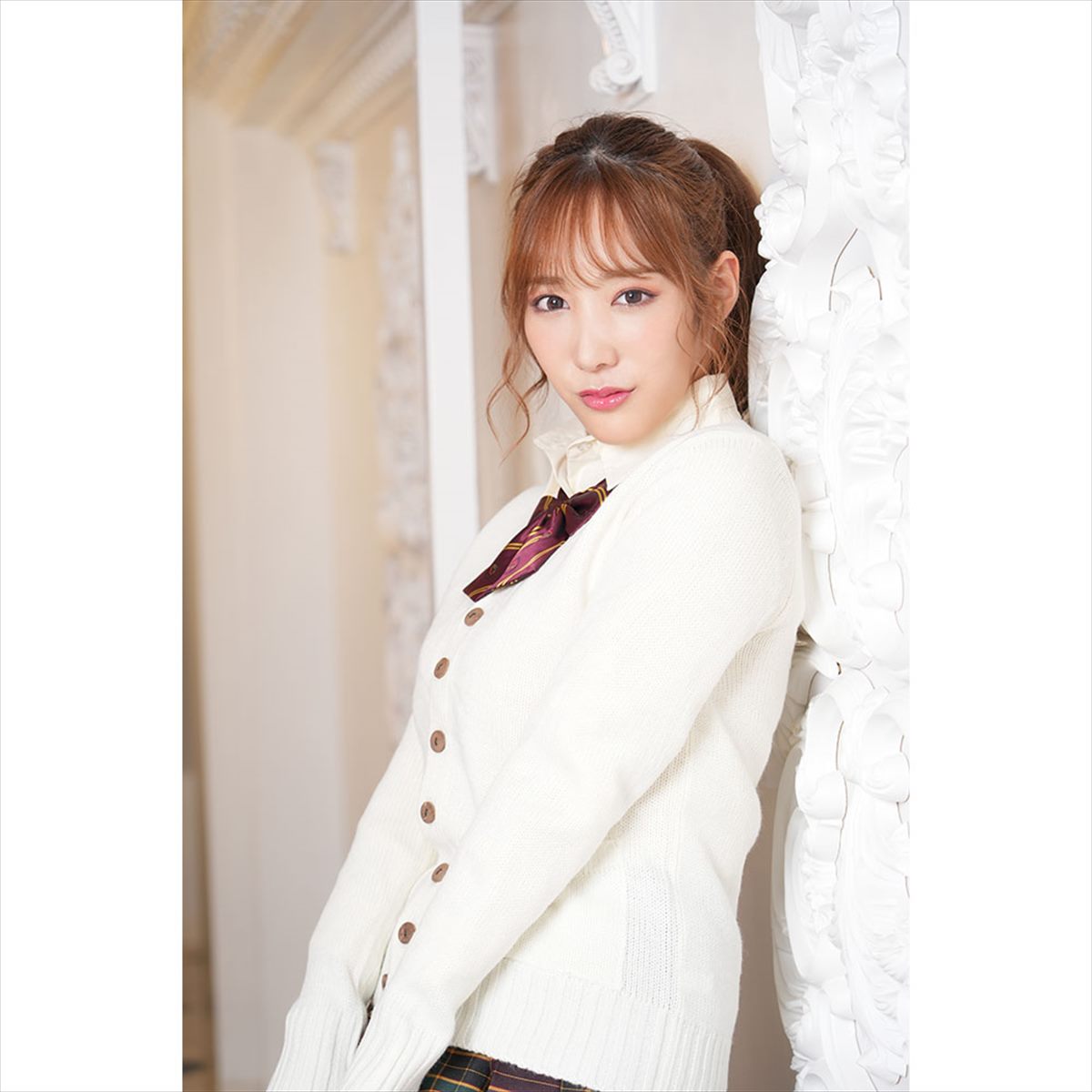 強気なスカートのカラーに甘いホワイトのセーターを組み合わせた鬼可愛制服。ブラウス・セーター・スカートの3点セットは愛のしるし♪