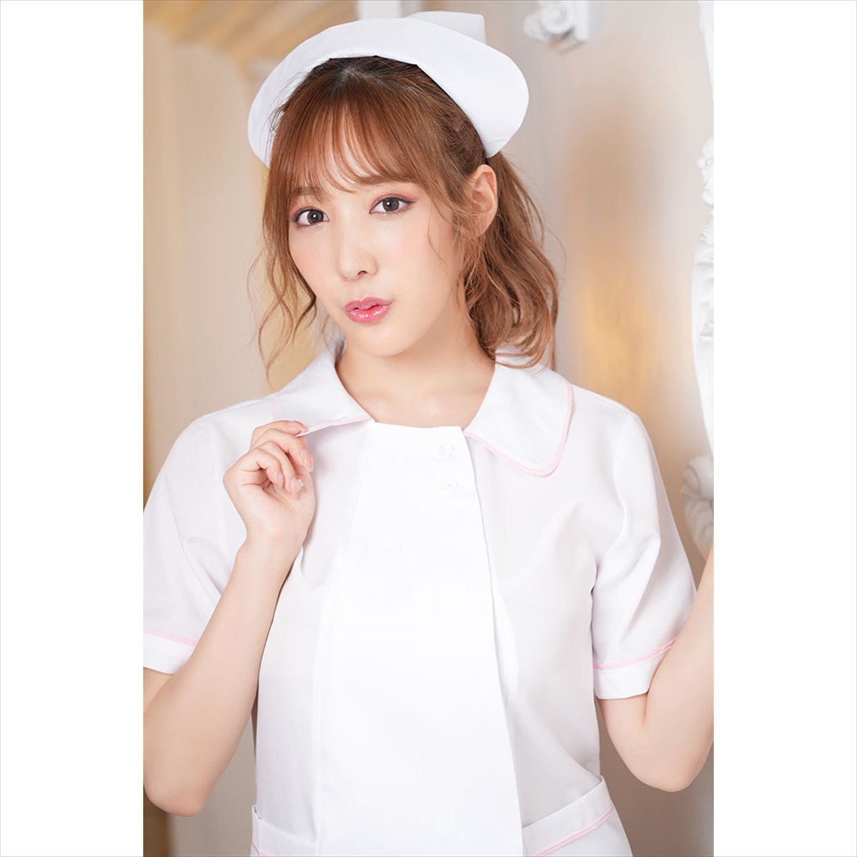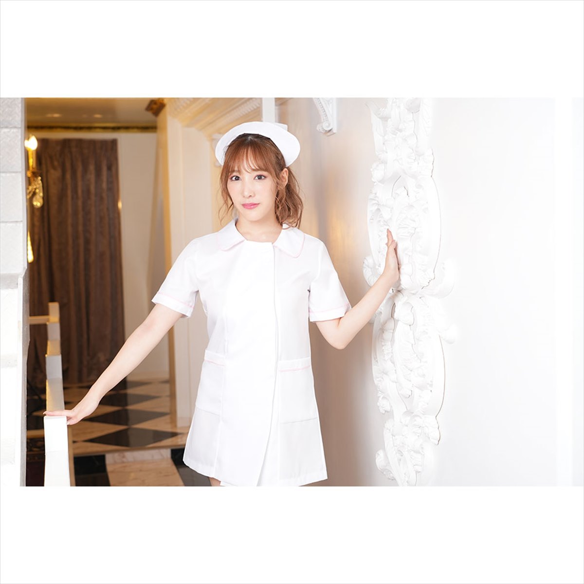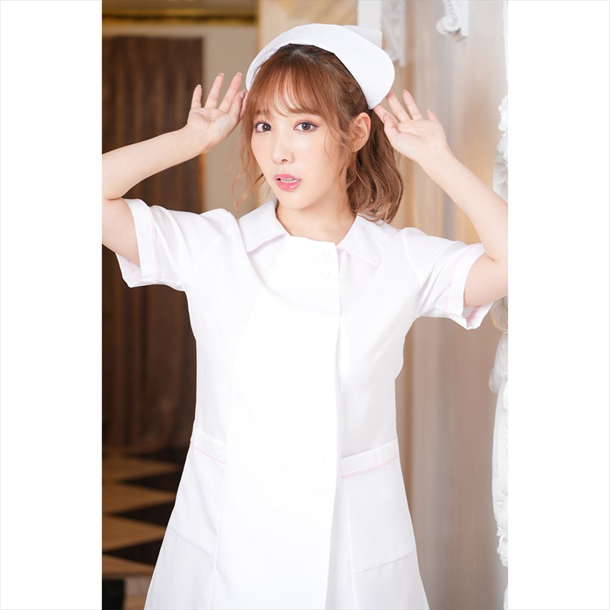 新人ナースを連想させるピンクラインの純然コスチューム。ホワイト一色のイメージが強いナースにあえてピンクの差し色を入れることで「可愛い」をプラス♪。