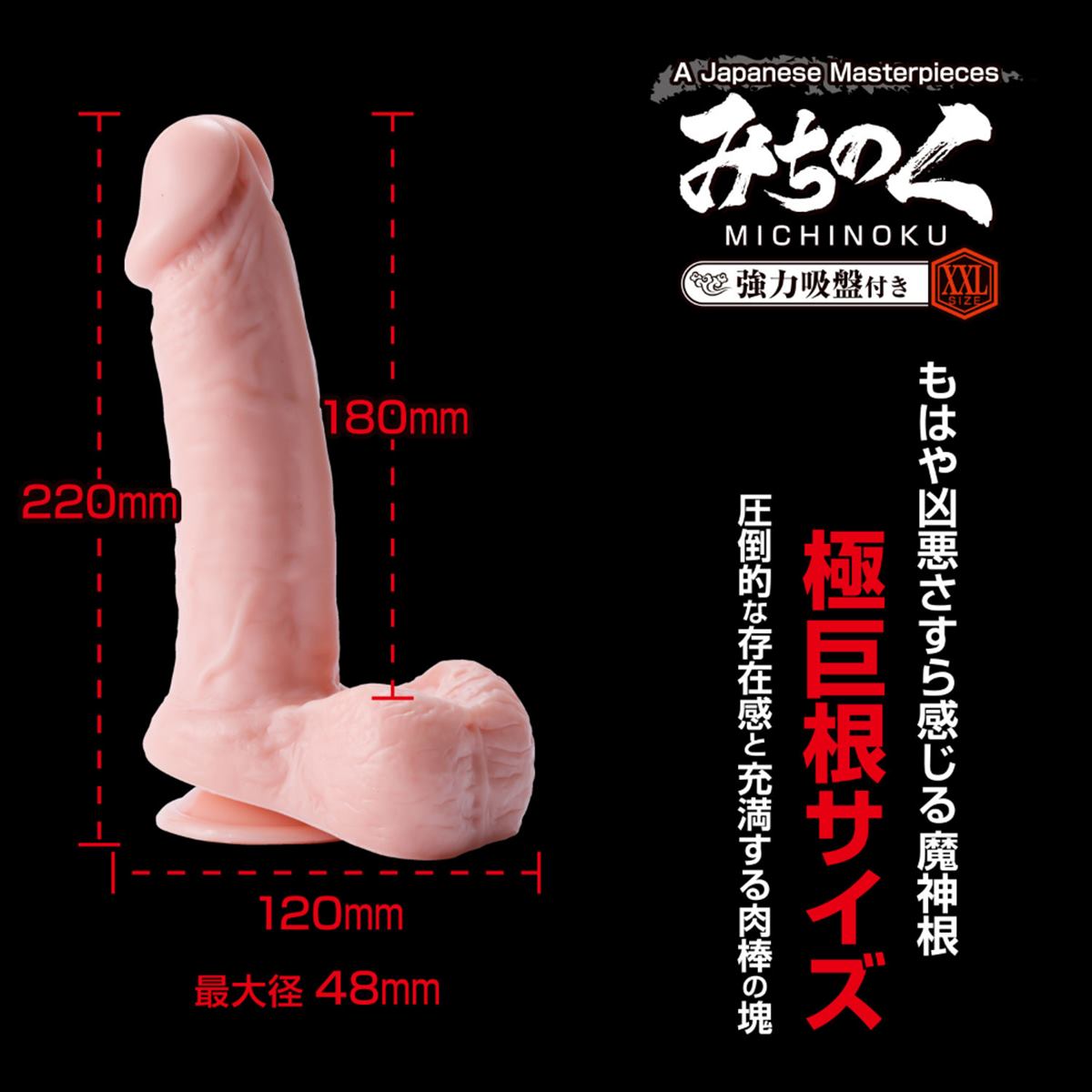 世界中で記録的大ヒットのみちのくシリーズ。圧倒的な存在感の極巨根タイプ”みちのくXXLサイズです。最早、凶悪さすら感じる未踏の極巨根。それでもみちのくシリーズならではのリアルな弾力・適度な硬さは折り紙付きです。根〇部分には吸着性が高く、壁や床などに自在にセットできる吸盤があるので、様々なプレイに活用いただけます。シリーズ累計で100万本を突破し、世界中で愛されるみちのくシリーズ。マニアならずとも手元に置いておきたい逸品です。”