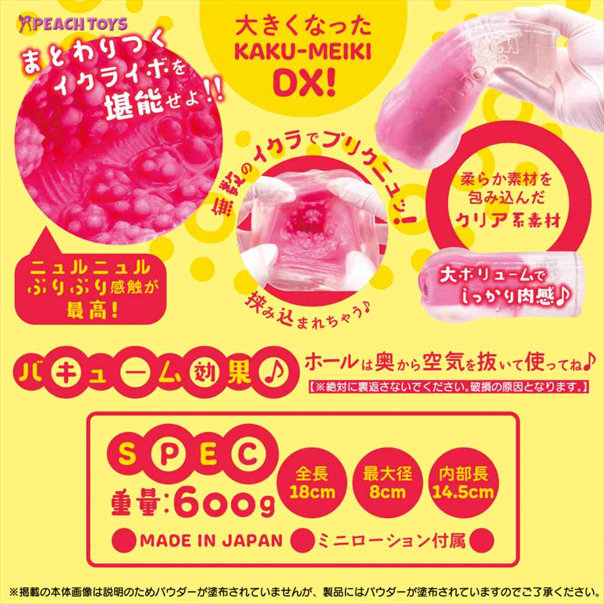 大きくなったKAKU-MEIKIDX!大ボリュームでしっかり肉感♪無数のイクラでプリクニュッ!挟み込まれちゃう♪KAKU-MEIKIならではの名器「KAKU-MEIKIDX(カクメイキデラックス)イクラコースター」を真面目に作りました!カズノコサンドの粒イボではない、イクラのような大きさのイボを使用。イボは柔らかな素材を使用し、外を硬めの素材が包み込むため独特の使用感。入口から2/3は比較的まったりでまるでフ〇ラのような優しい独特の感触ですが最後の1/3はフィニッシュのためにしっかりとした刺激を感じ取れるように外側と同素材。柔らか素材を包み込んだクリア系素材。まとわりつくイクライボを堪能せよ!!ニュルニュルぷりぷり感触が最高!反り上げる!コースター構造+イクラ+肉厚で完全名器♪『手前で感じて奥でフィニッシュ!』を楽しめるギミックを盛り込んでいますので、たっぷりとご堪能ください♪