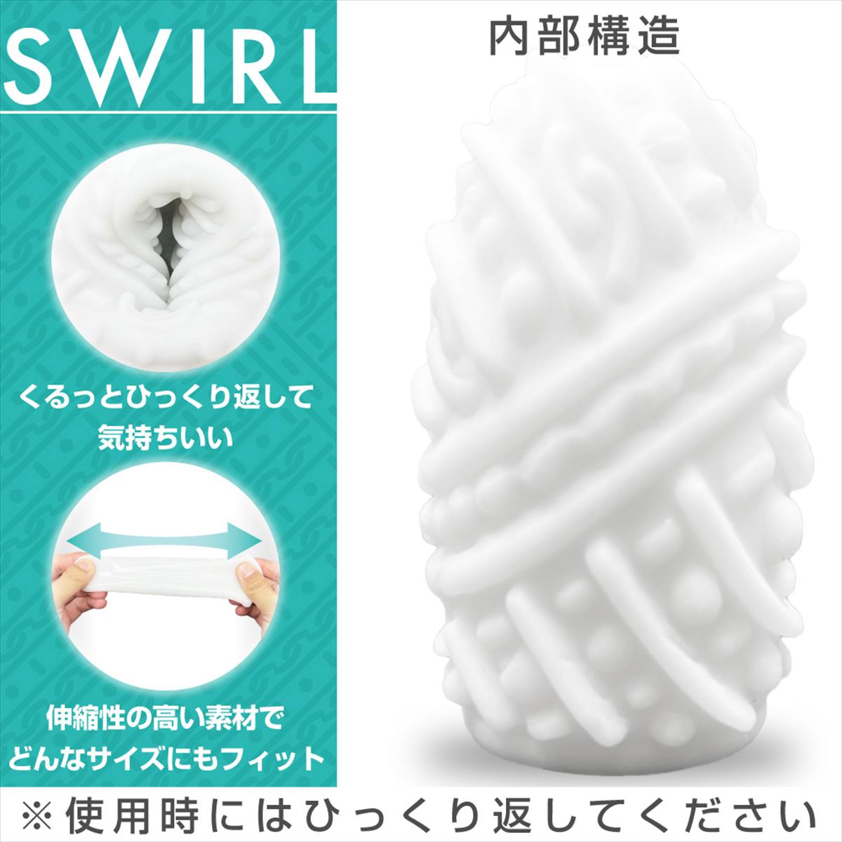 コンパクトで持ち歩きに便利なミニホール。SWIRLは螺旋状のヒダが渦巻の様に巻き付く高刺激タイプ。メリハリの効いた大きな凸凹が、見た目以上にしっかりとした刺激を生み出します。さらに耐久性も高く、繰り返し使用可能。容器はホールを立てられるタイプなので、洗ってからの乾燥や保管にも便利です。