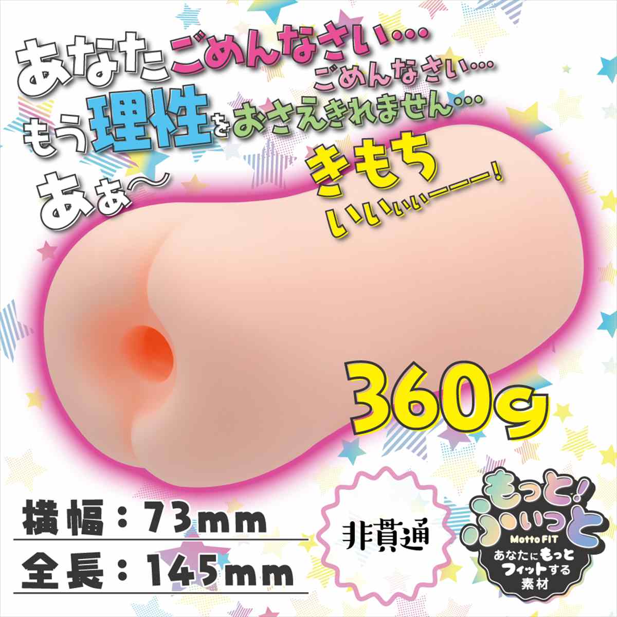 もしも隣の奥さんがエロい恰好で誘ってきたら・・・誰もが妄想する夢のシチュエーションホール!すれ違う度に言い寄ってくる隣の奥さんにもう我慢ならん!うねうね絡みつく肉ヒダパイプを抜けると、不規則なゾリゾリヒダに擦られ悶絶!仕上げには一番奥のザラザラ肉ヒダが先端をグリグリ刺激して発射を促します。360gの本体はその肉厚でググっと締め付け、密着度も包容感もたっぷりです。適度な弾力と密着感の独自素材「もっとふぃっと」を採用しています。