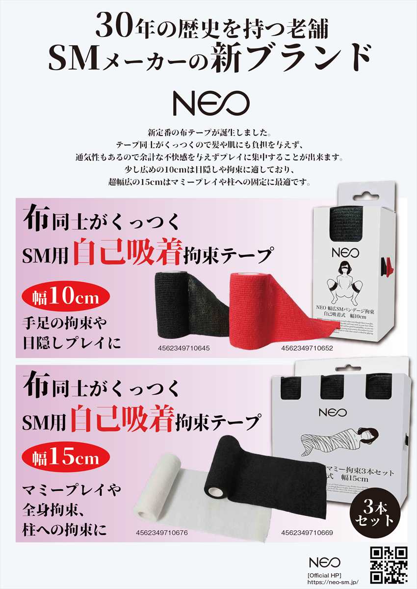 ●糊が無いのに布同士がくっつくSM拘束テープ、定番の黒色です。糊が無く自己吸着式なので扱いやすく、目隠しの際に髪に引っ付く事はありません。●肌触りが良い素材で通気性も良いため、相手に余計な不快感を与えることなく、プレイに集中することが出来ます。●通常よりも広い10cm幅は手足の拘束や目隠しプレイに最適です。