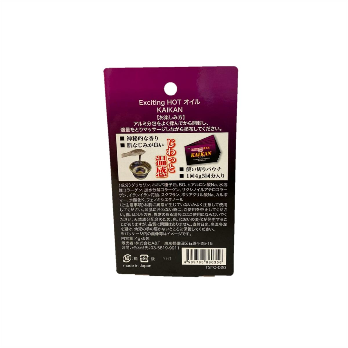 本気と溢れる快感が楽しめる新感覚オイル!さっと塗り込むと温感による心地よいあたたかさを感じ気持ちも普段より開放的に。オイルの伸びのあるなめらかさと濃厚でとろみのある感触が新しい。神秘的なアロマの香りと肌なじみもよく艶やかなオイルが2人のラブタイムをさらに演出します。女性の肌にも配慮した乾きづらいテクスチャーで安心,安全の日本製です。持ち運びしやすい使い切りパウチだから使う時も終わった後もスマートに。