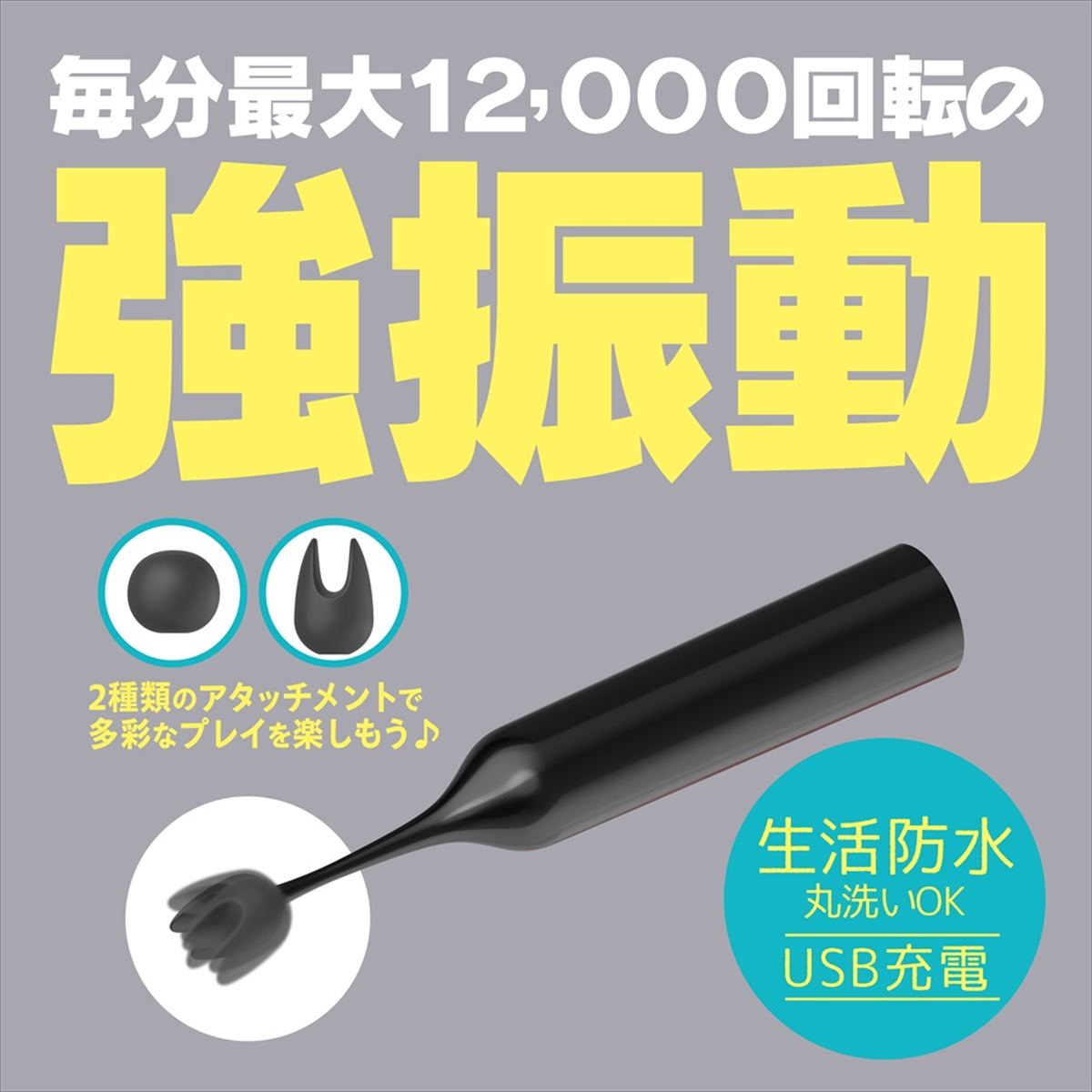 超ピンポイントシリコンヘッドローターのク●チョク。小さなヘッドだから集中した毎分12000回転の強振動を2種のシリコンヘッドを使い分けてお好みの場所で楽しんでください。振動パターンも10種搭載、本体重量57gと超軽量で生活防水タイプの為、丸洗い可能。
