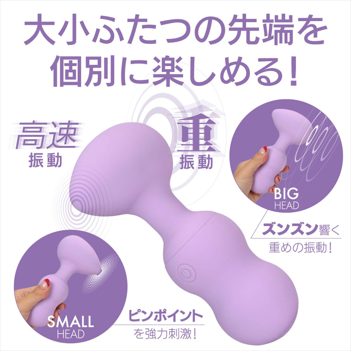 エッグ型ヘッドの左右に大小、サイズの違うモーターを配置!<>小ヘッドにはピンポイント用に微細振動モーターでポイント刺激を楽しめます。<>大ヘッドには重振動の大型モーターを搭載してデンマのダイナミックな振動を体感出来ます。<>電圧5Vの強力振動+高品質なオールシリコンボディだから触り心地も非常に滑らかで防水性能も完全防水を実現(防水等級IPX7)当て心地の良さを上げるフレキシブルネックの反発度にもこだわった絶品デンマです。<>さらに二つのモーターを個別操作出来るのでお好みに合わせて色々な楽しみ方が出来ます。<>もちろん同時振動も可能なので共に最強振動にした時のパワーは圧巻です。<>強弱も5段階に微調整が出来るので振動の好みに合わせて楽しめます。さらに5つのパターン振動も内蔵。<>満充電120分で最大60分使用可能。(※使用環境により大幅に増減します。)