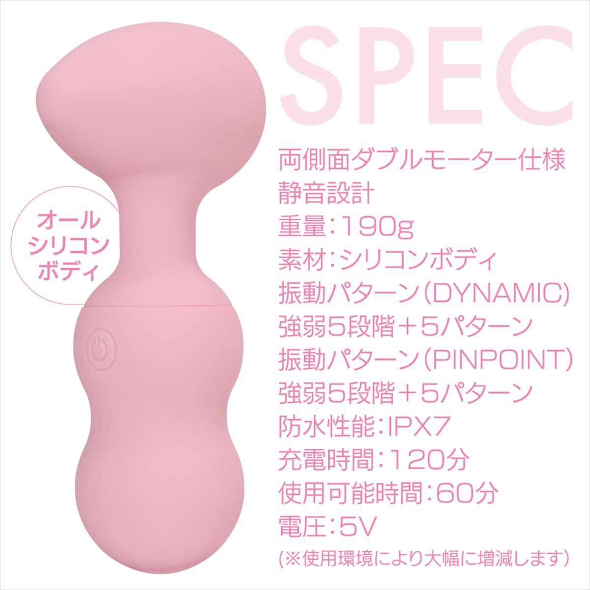 エッグ型ヘッドの左右に大小、サイズの違うモーターを配置!<>小ヘッドにはピンポイント用に微細振動モーターでポイント刺激を楽しめます。<>大ヘッドには重振動の大型モーターを搭載してデンマのダイナミックな振動を体感出来ます。<>電圧5Vの強力振動+高品質なオールシリコンボディだから触り心地も非常に滑らかで防水性能も完全防水を実現(防水等級IPX7)当て心地の良さを上げるフレキシブルネックの反発度にもこだわった絶品デンマです。<>さらに二つのモーターを個別操作出来るのでお好みに合わせて色々な楽しみ方が出来ます。<>もちろん同時振動も可能なので共に最強振動にした時のパワーは圧巻です。<>強弱も5段階に微調整が出来るので振動の好みに合わせて楽しめます。さらに5つのパターン振動も内蔵。<>満充電120分で最大60分使用可能。(※使用環境により大幅に増減します。)