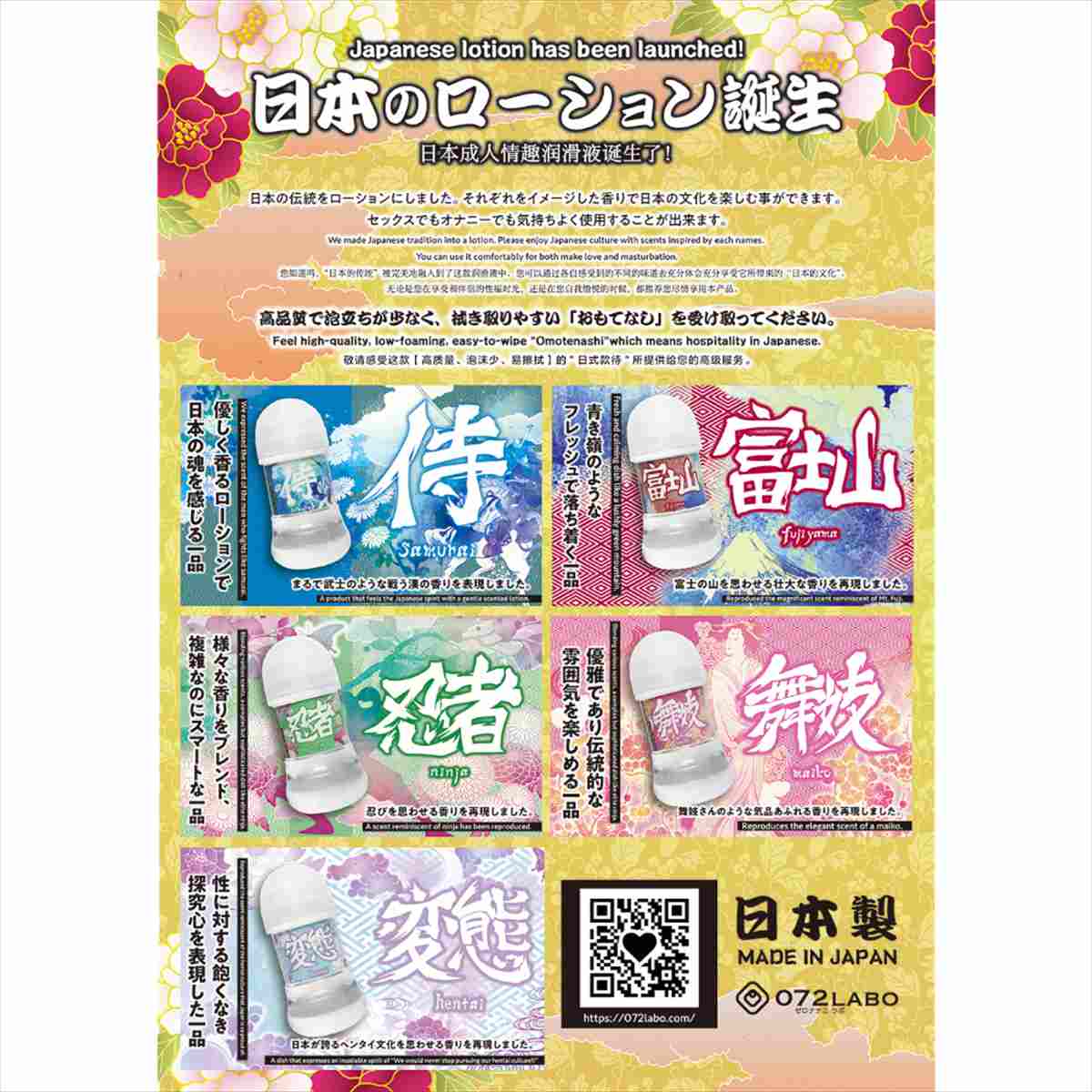 ●舞妓さんのような気品あふれる香りを再現しました。●優雅であり伝統的な雰囲気を楽しめる一品。●安全成分のみでブレンドされた安心と信頼のメイドインジャパンのローションです。