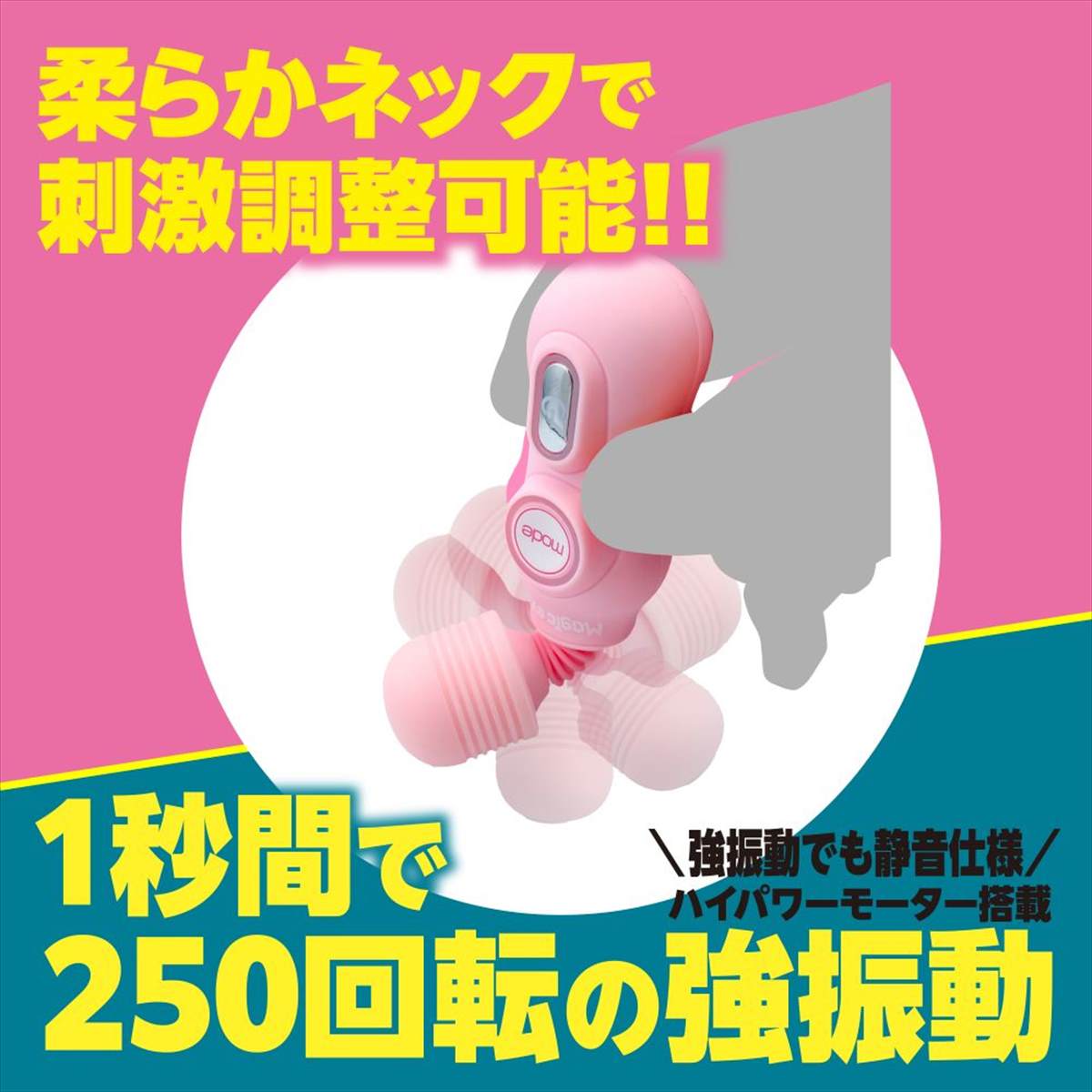1秒間で250回転の強振動モーターを搭載した小型デンマ。電源の長押しが必要ないクイックスタートタイプ。洗えるシリコンヘッドと10パターン振動、静音設計とカワイイ見た目に似合わない高性能。単四電池が2本付属していますので購入してすぐにご使用いただけます。
