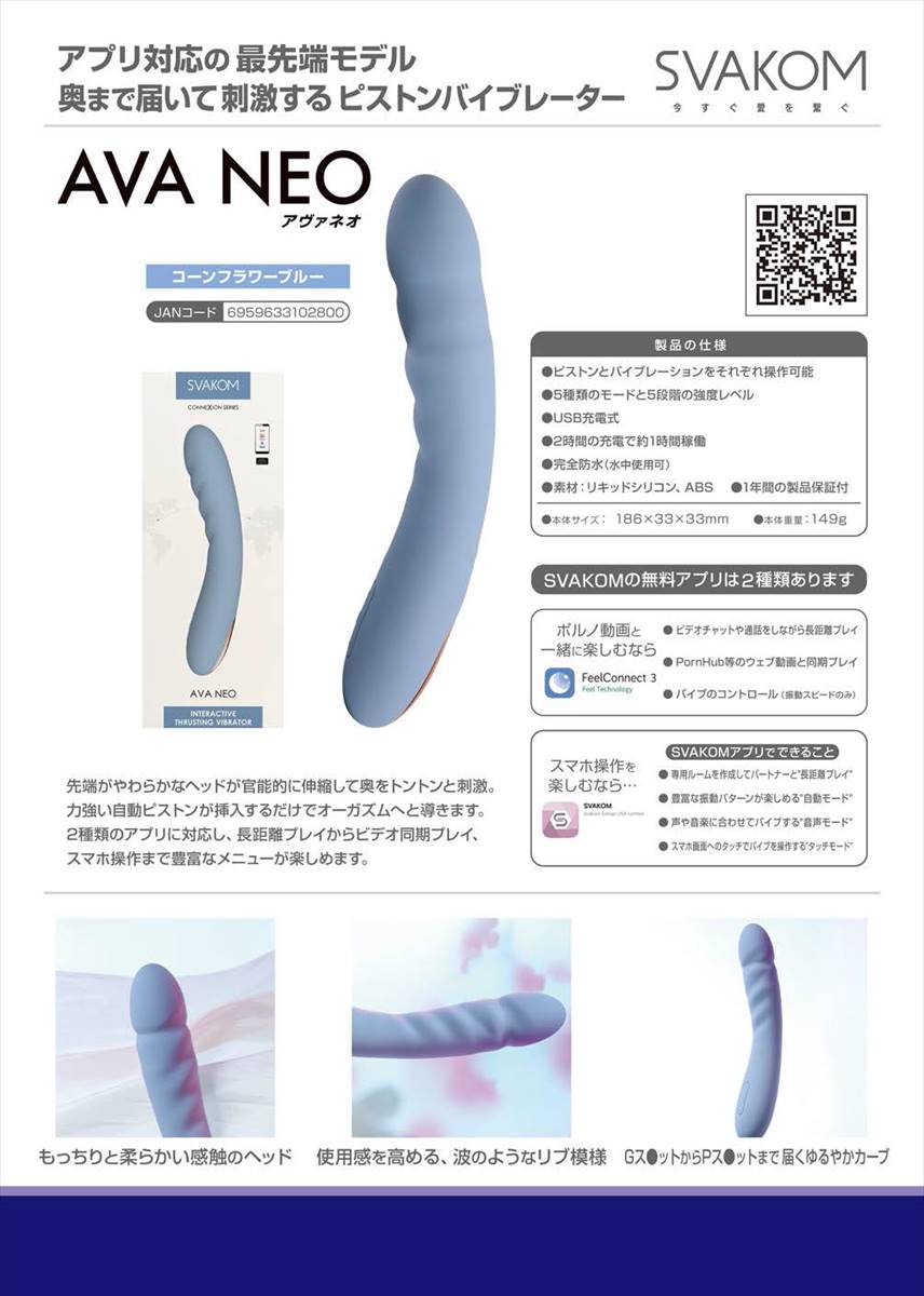 大人の色気漂う抜け感。アプリ対応・映像連動型ピストンバイブレーターAvaNeo(アヴァネオ)は、クッション性のあるヘッドが伸縮する映像連動型のピストンバイブレーターです。アプリと同期すると、インタラクティブなアダルト動画に合わせて動かしたり、動画配信者などのウェブカメラプラットフォームでパフォーマンスしたりできます。