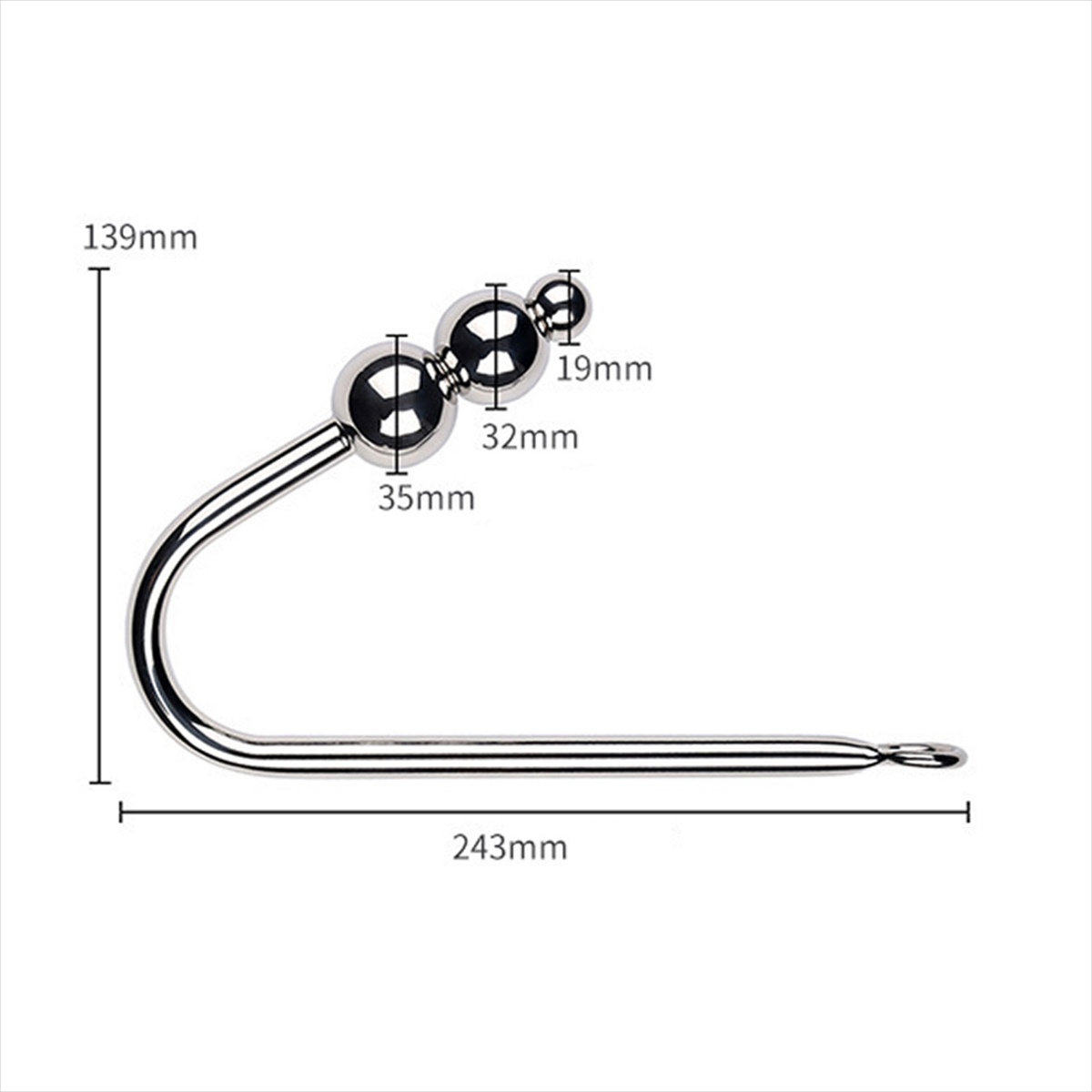 強烈な刺激と見た目の凌●感が高いのがア●ルフックです。挿入するだけでピンポイントに刺激を与え、金属の硬く冷たい感触が何とも言えない快感を生みます。調●や凌●プレイに使えば、一味違ったプレイを楽しむことが出来るアイテムです。普通のア●ルへの刺激で満足出来なくなった方は是非お試しください。玉が3個付いている衝撃の形状で同時刺激が強烈に楽しめるア●ルフックです。首輪とチェーンで繋げば、ア●ルフックの重さで首輪も引っ張られるといった凌●プレイや立った状態で吊り上げて使用すれば、吊り上げる刺激、緩めた時にフックが抜けない様にア●ルを締めさせる調●も出来ます。3つの玉の刺激も高く、挿入時の圧迫感が強くなっているので、他のア●ルフックでは味わえない快楽を求められるアイテムです。※注意事項本製品はジョークグッズとなります。その他の目的でご使用になられた際の責任等一切負いかねますのでご了承ください。