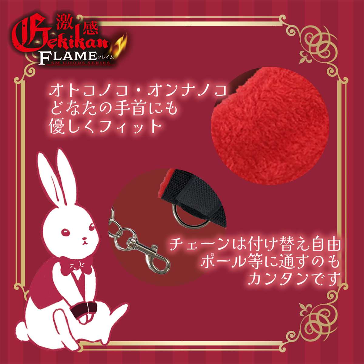 もこもこのファーが内側についた痛くないテカセ。マジックテープで留めるから、締め付けも調節可能。ファーの部分が重なっても留められるので、どなたの手首にも優しくフィットします。チェーンは付け替え自由。SM初心者のはじめての拘束プレイも安心なテカセです。