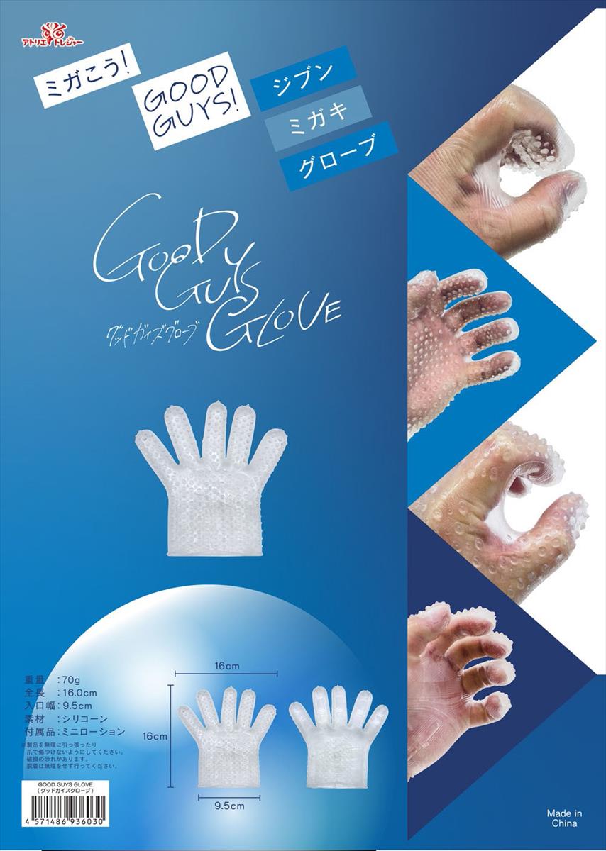ミガこう!GOODGUYS!ジブンミガキグローブ!「GOODGUYSGLOVE(グッドガイズグローブ)」の新登場です。シリコーン製の透明グローブです。イボイボ面とヒダヒダ面の両面タイプ。右手でも、左手でも使用可能。付属のローションで楽しみ方は色々。ミガきにミガいて磨いてGOODGUY!になろうぜ!※透明グローブは1個入りです。【注意】製品を無理に引っ張ったり爪で傷つけないようにしてください。破損の恐れがあります。脱着は無理をせず行ってください。