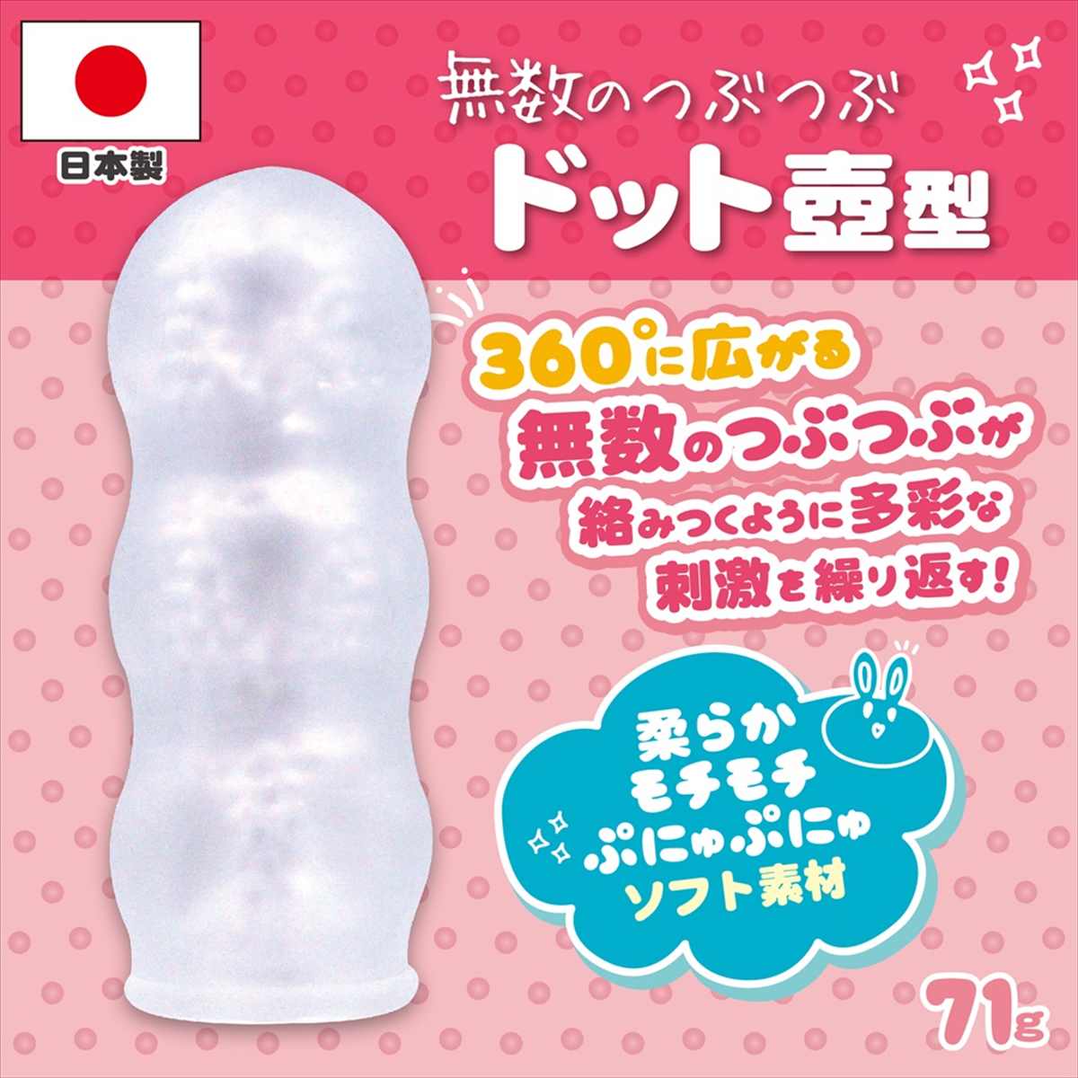 360度に広がる無数のつぶつぶが絡みつくように敏感な部分を刺激する。窄まる3つのエリアで搾り取る。どんな人にでもぴったりフィットする伸縮性抜群の日本製エラストマーを使用。ローション付属。イラストレーター:むらさき*