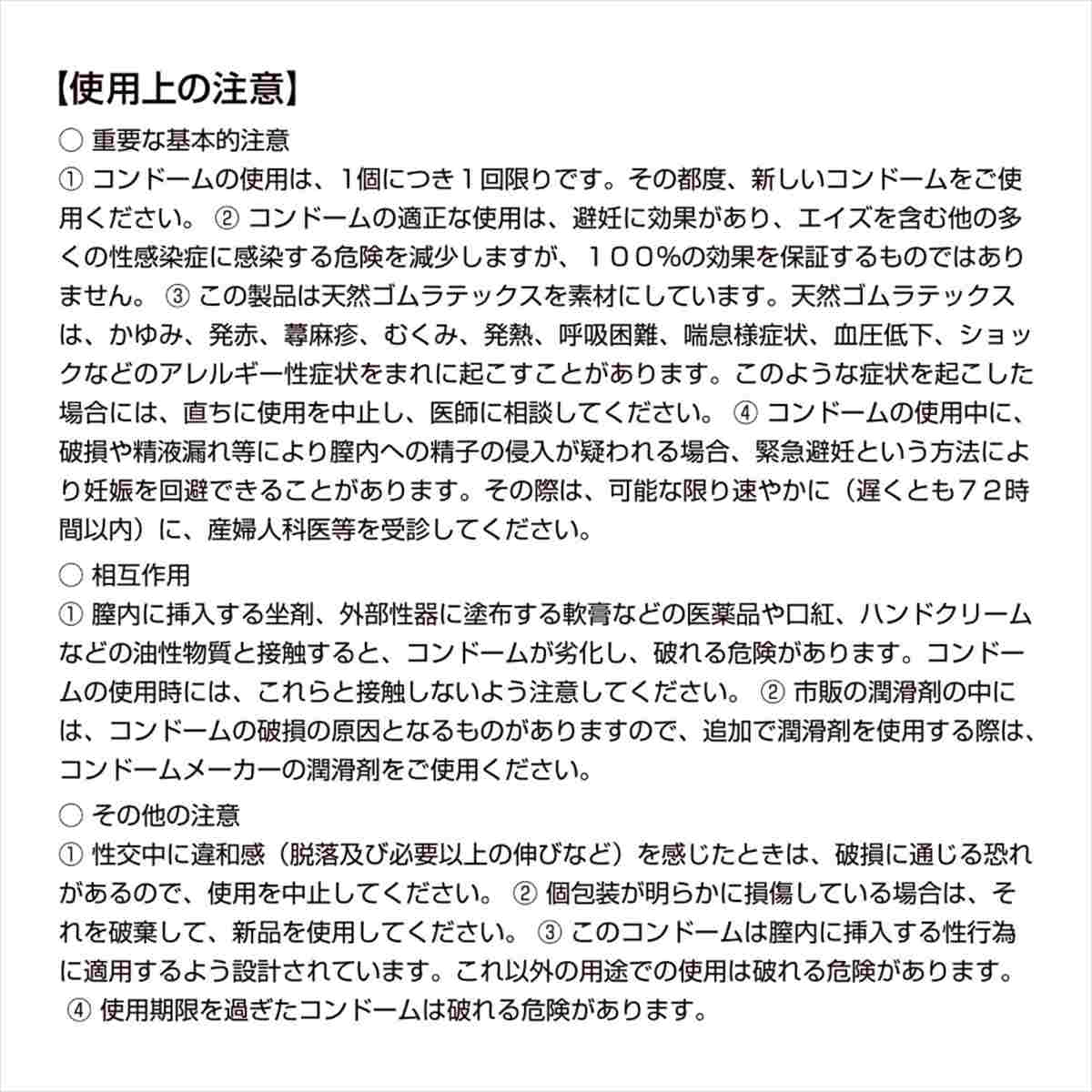 天然ゴムラテックス素材のナチュラルタイプ・コンドームです。程よいサイズ感で多くの男性にフィットします。この製品は日本国内で製造されています、安心してお使いください。コンドームの装着は大人の男のマナーです。使用方法を守って、正しくお使いください。単品JAN:4571355633671
