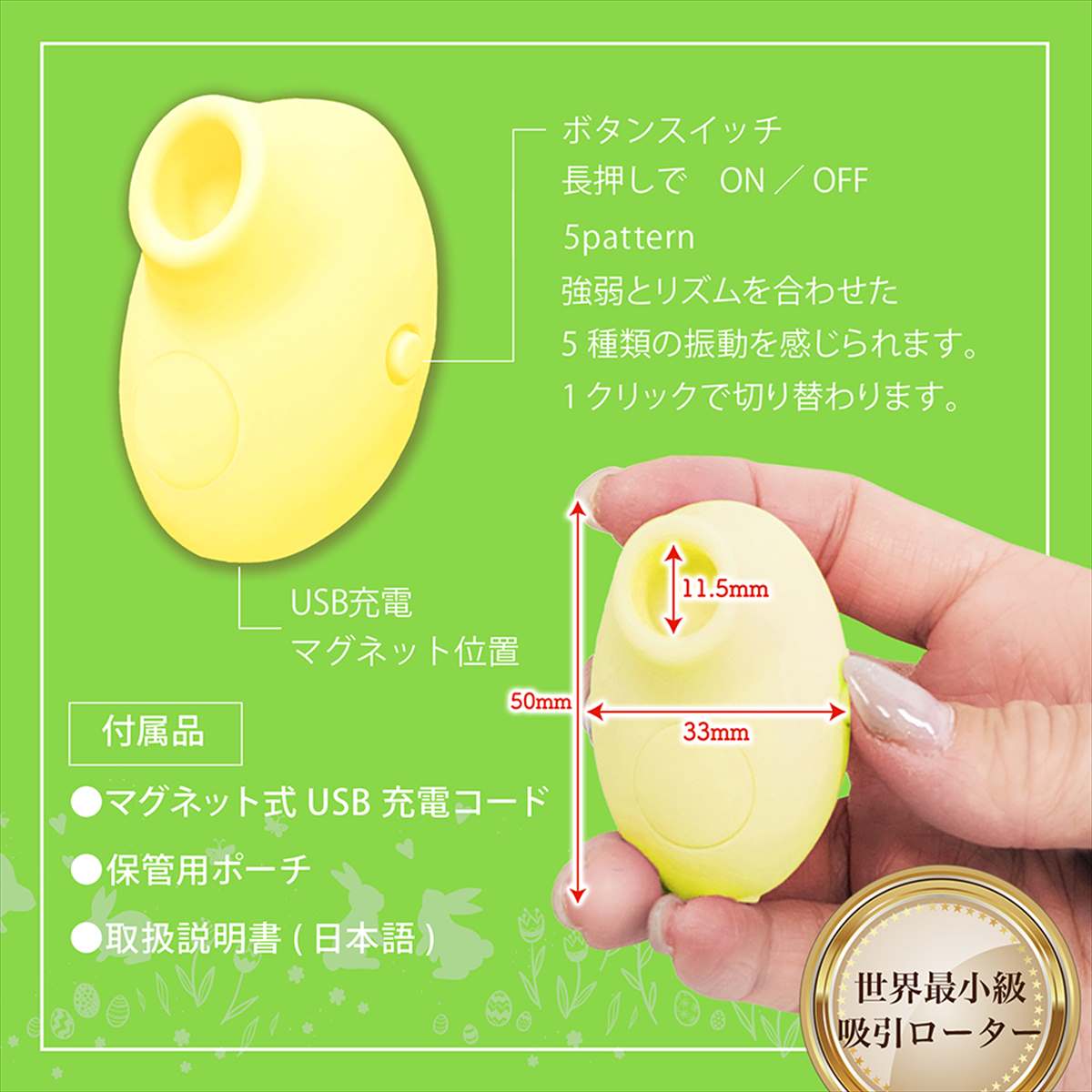 やさしく、時には官能的に…刺激的な愛撫に包み込まれる。陰●体への吸引機能がついたセルフプレジャーアイテム。長年の製品ノウハウから「エアーバルブ方式」を開発、近年発売されるトイの中でも注目度の高い吸引系グッズの超小型化に成功しました。握ると手の中に隠れてしまうほどの極小サイズです。段階を経て優しく吸引することにより、心地の良いオーガズムを体感することができます。陰●を覆う吸い口は柔らかなシリコン製で、大切なところを優しく保護しつつ吸引力が逃げないような構造になっております。防水仕様でお手入れもしやすく。充電式でコードレスなので扱いやすくなっております。このサイズだから、ポーチにいれて持ち運び自由なことはもちろん、下着の中でこっそりと楽しむことも可能。パートナーとのマンネリ化防止として密かに使いたいとお考えの方にもぴったりです。