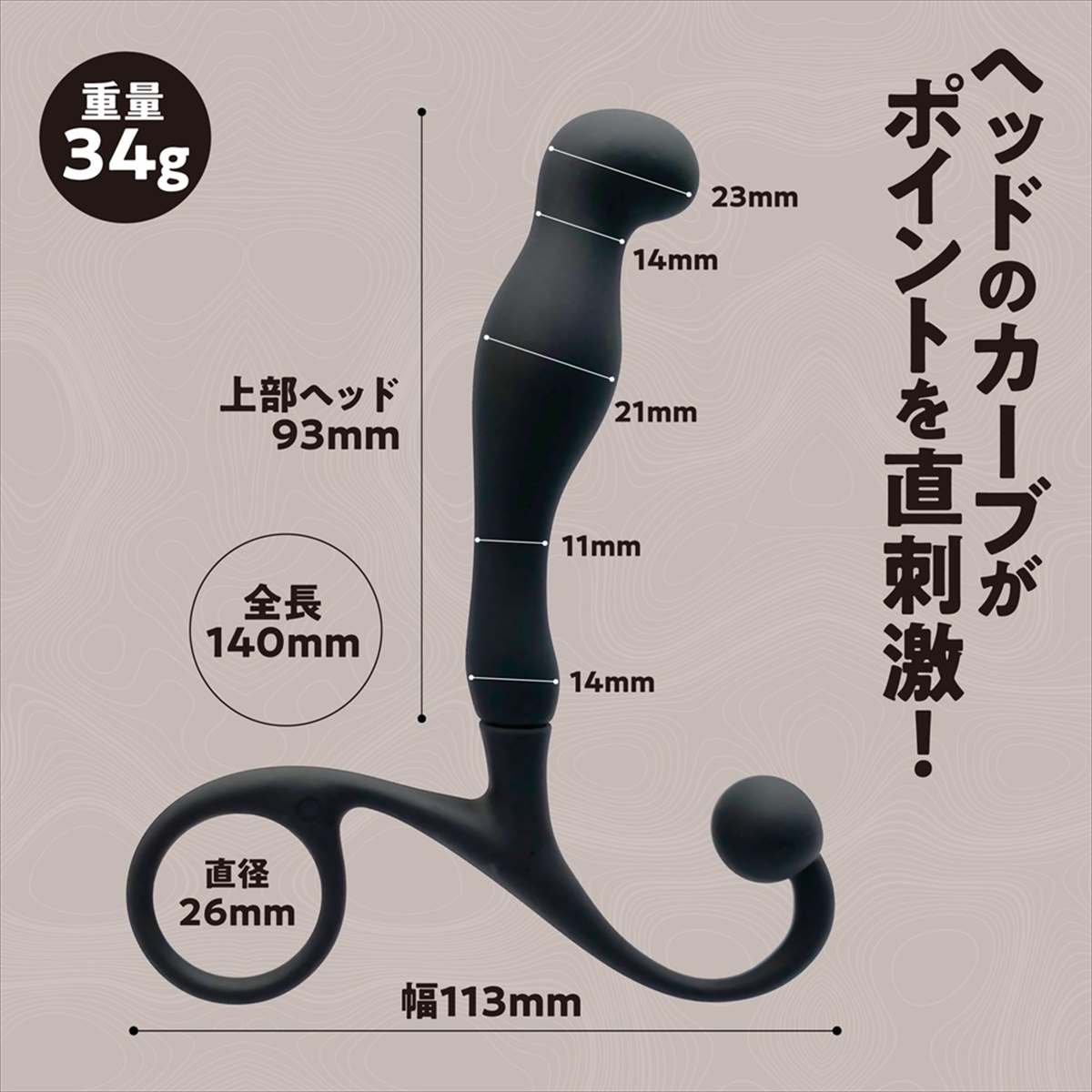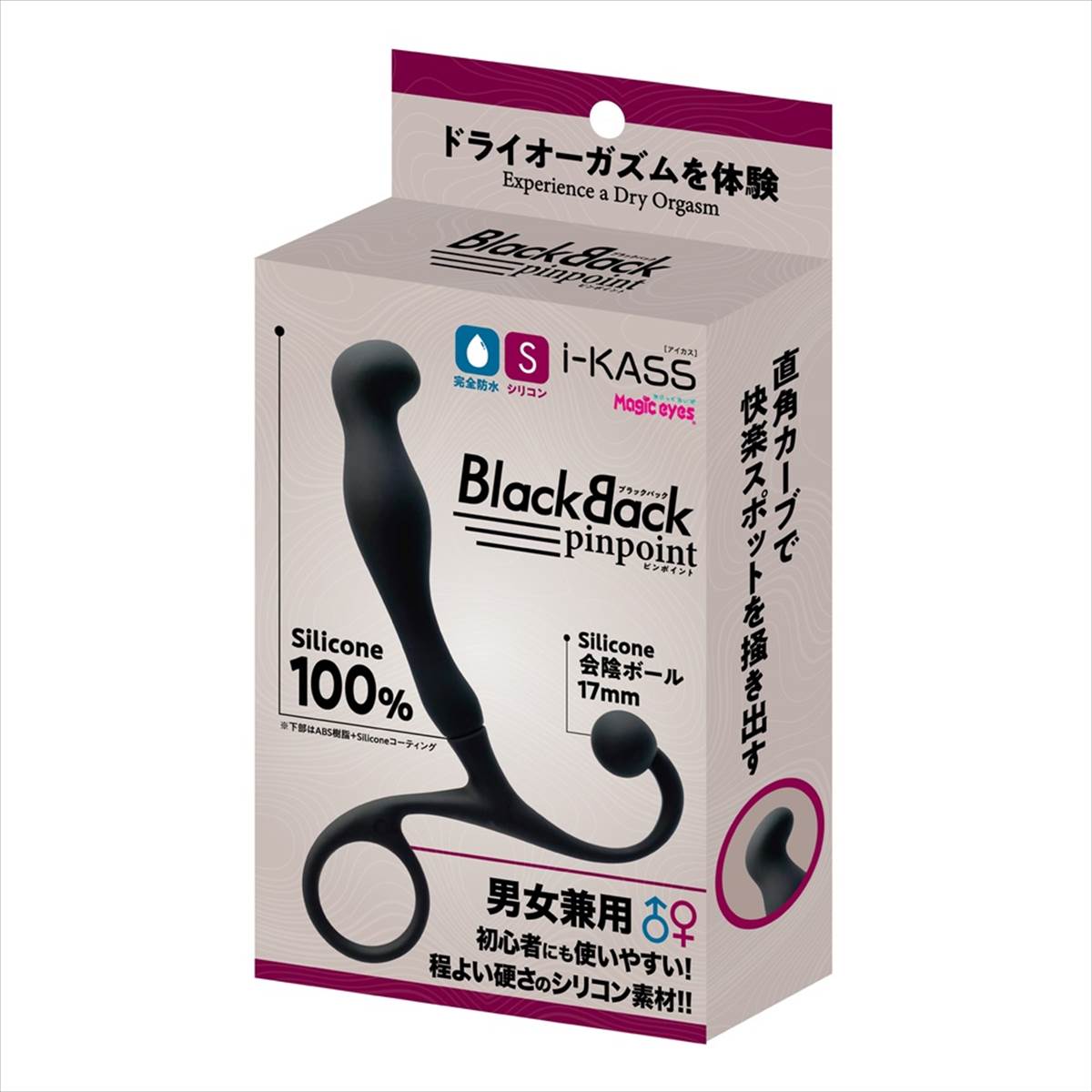 尻にいいアイカスにブラックバックシリーズが新登場!ピンポイントは直角カーブのフックで自分のいいスポットを直で刺激できます。シリコン部全長140mm先端部が最大径の23mmとなり会●ボールも搭載しています。女性の使用の場合にもシリコン素材なので初心者向き。ドライオーガズムを体験する第一歩を!!