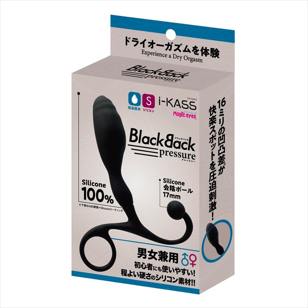 尻にいいアイカスにブラックバックシリーズが新登場!プレッシャーはその名の通りシリーズ最大径の27mmと拡張も視野に入れた初中級者モデル。シリコン部の全長140mm上部ヘッドは93mmと中を圧迫できます。会●ボールも搭載しておりドライオーガズムを体験する第一歩のグッズとして最適です。