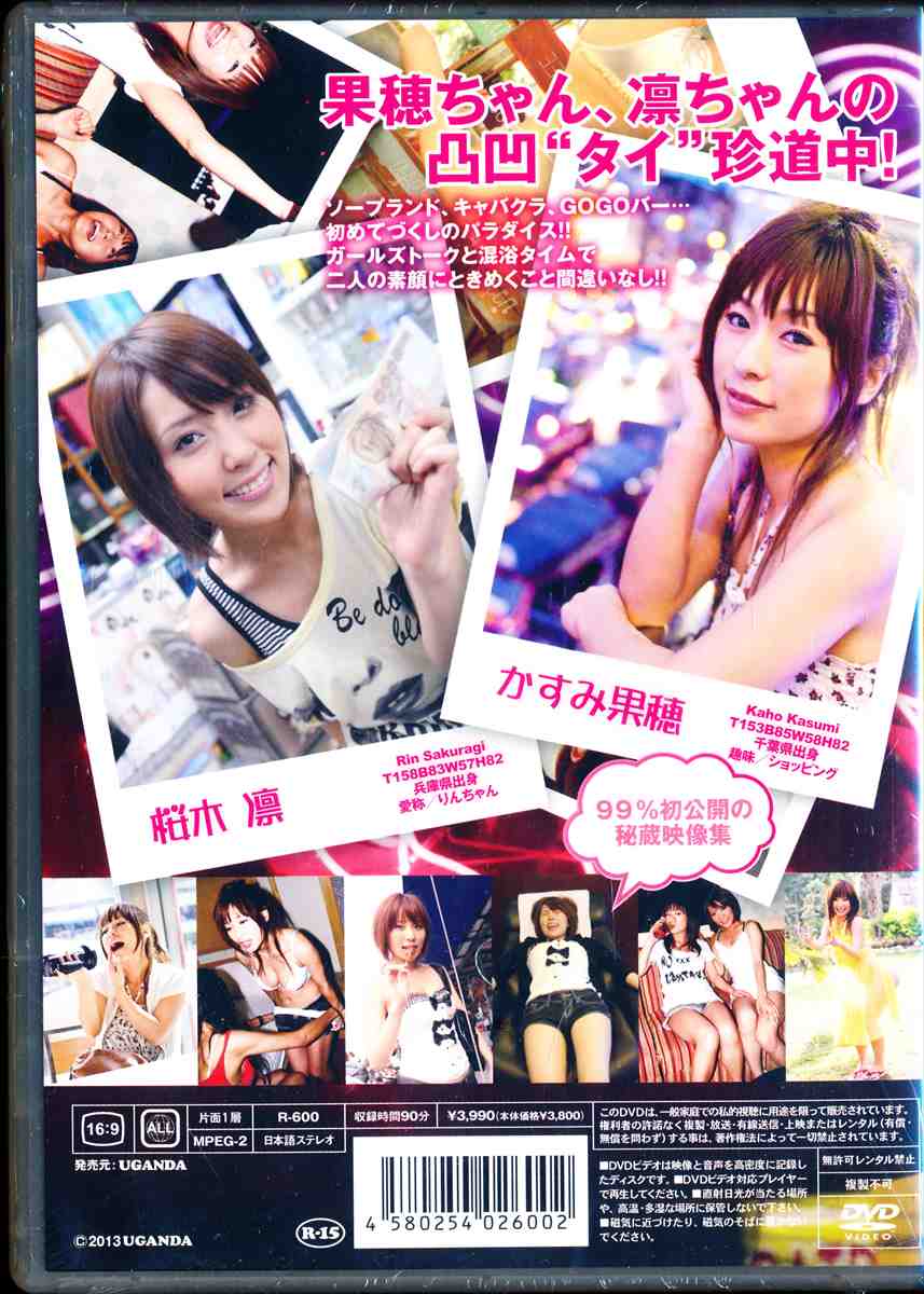 新シリーズ ”ときめきパラダイス” 第1回目となる今回は、4年前の2009年にタイムトラベル。 凛ちゃんとの初めてのロケに少し緊張しているかすみ果穂ちゃんと、初めてのタイロケで食事や体調が心配な桜木凛ちゃんの凸凹珍道中。 イメージDVD撮影の裏側で撮られていた99%初公開の秘蔵映像集。 夜の3大初体験ではソープランド、キャバクラ、GOGOバーと初めてづくしのパラダイス!! 夜更けまで続く、ガールズトークと混浴タイムは二人の素顔にときめくこと間違いなしの必見DVDです。