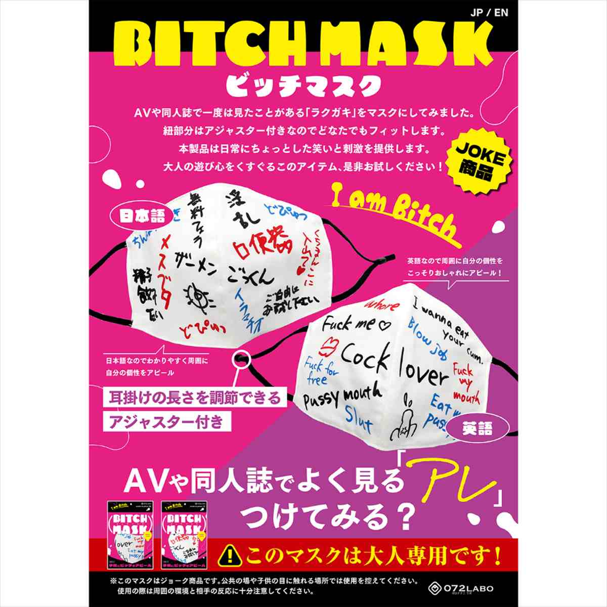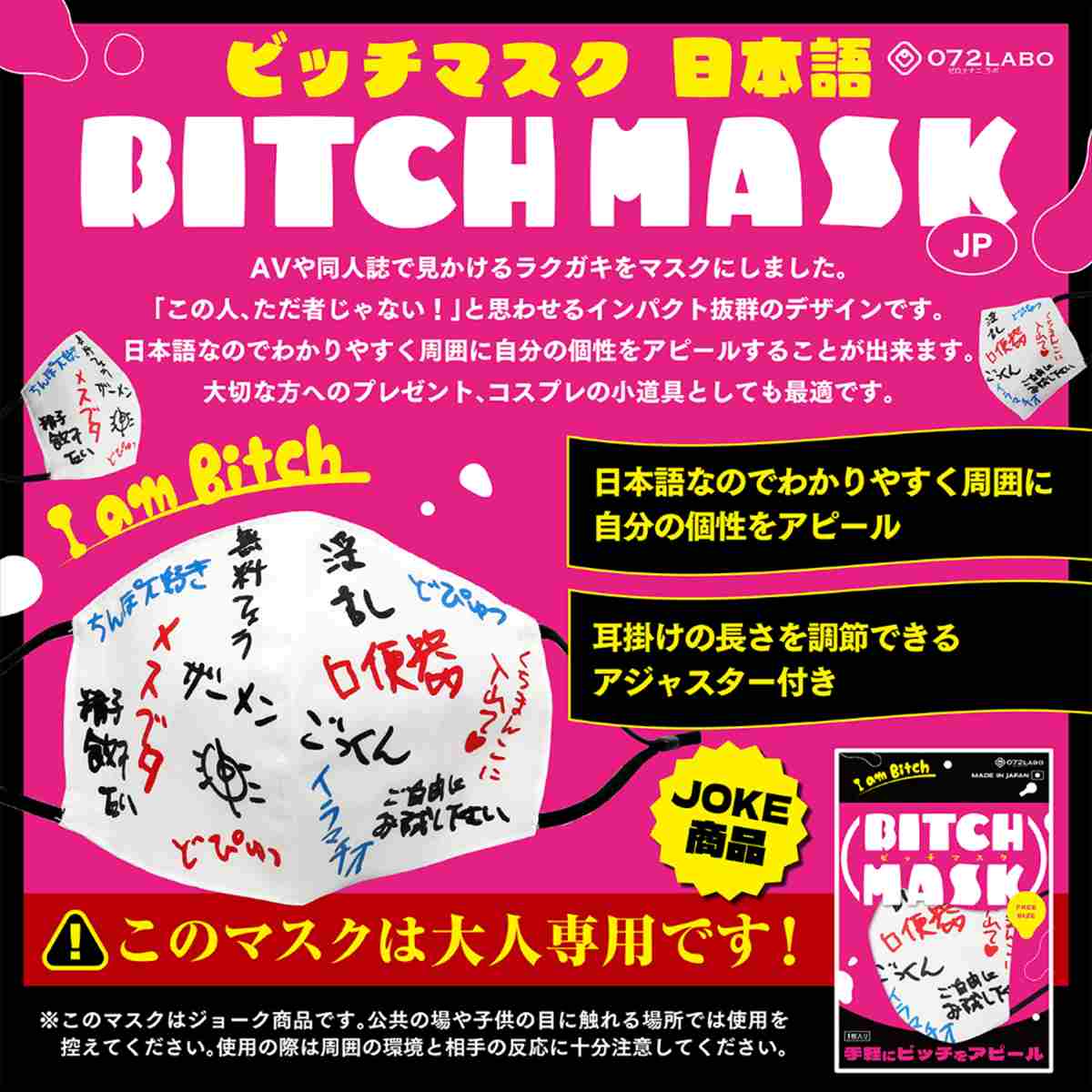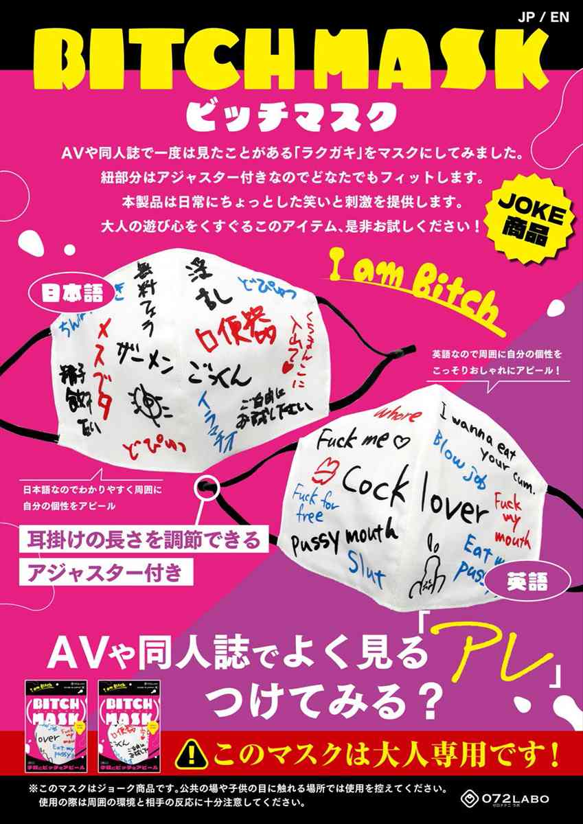 ●このマスクは大人専用です!●AVや同人誌で見かけるラクガキをマスクにしました。●「この人、ただ者じゃない!」と思わせるインパクト抜群のデザインです。●日本語なのでわかりやすく周囲に自分の個性をアピールすることが出来ます。●大切な方へのプレゼント、コスプレの小道具としても最適です。●※このマスクはジョーク商品です。公共の場や子供の目に触れる場所では使用を控えてください。使用の際は周囲の環境と相手の反応に十分注意してください。