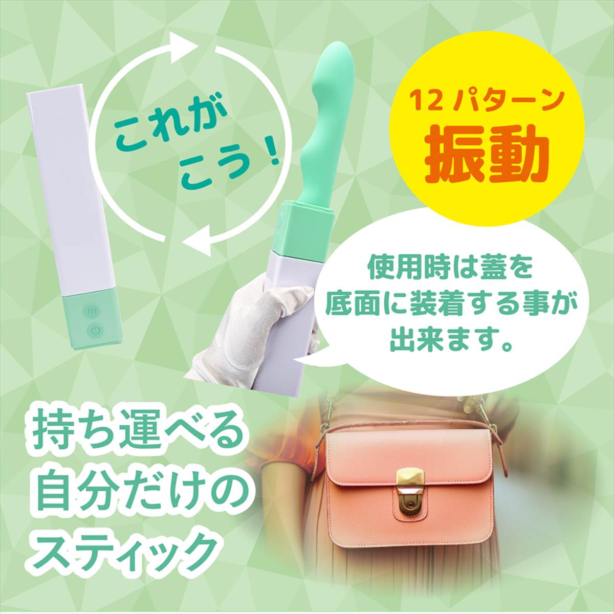 蓋が付いてるからどこでも持ち運べる、自分だけのスティックバイブ。使わない時はケースに入れて、使用時にはケースを外して本体底面に付ければ持ち手になります。日本人のサイズに合わせた128mmのスティック部分には先端とG部分の2箇所に上質な振動モーターを配置。個別に振動パターンを操作出来ます。振動パターンも5段階の細かい強弱調整+実用性の高い7パターンを用意。表面素材は安心安全な高グレードシリコン採用。滑らかな肌心地が挿入感をより上質にします。120分の充電で最大70分の長時間使用が可能な充電式リチウムイオンバッテリー搭載。(使用環境により大幅に増減します。)IPX5の防水性能だからしっかり洗えるので衛生的に長くご使用頂けます。