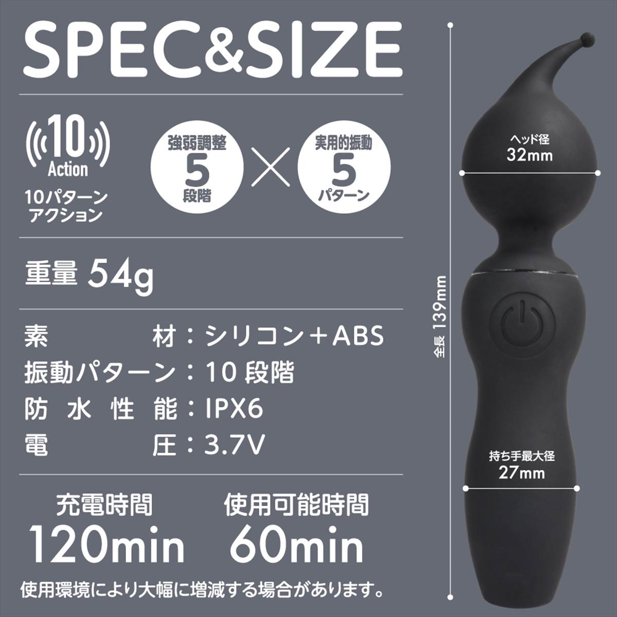 デンマとしてだけじゃなく、ピンポイント刺激も出来る大人気グッズ『ピンデン』にコンパクトで使いやすいミニタイプが登場。今回も先端にピンポイント刺激が楽しめる形状を採用。気持ちいい肌触りと柔らかさにこだわったオールシリコンボディに高品質ミドルモーターを搭載。強弱調整5段階と実用性の高い5パターンアクションの10パターン振動。軽量でコンパクトだから疲れにくく楽しめます。使いやすさと品質・性能に優れたミドルサイズデンマ。120分の充電で約60分の連続使用が可能(使用環境により大幅に増減します。)IPX6の高レベル防水性能なのでしっかり洗えるから衛生的に長くお使い頂けます。