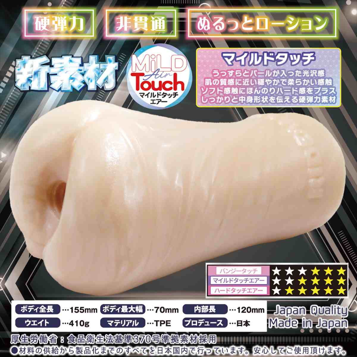 萌えあなトリニティの最新作が新素材で登場!トリプルエンジン搭載押し寄せるトリプルテンション、ボルテージに合わせて3面ギアチェンジで快楽3倍快楽テクノロジーで快楽の向こう側へトライ異なる刺激、3種の多重音をテクニカルに回してコントロールしよう新素材マイルドタッチエアー:肌感のような柔らかいにほんのりハードをプラスしっかりと中身形状を伝える硬弾力素材