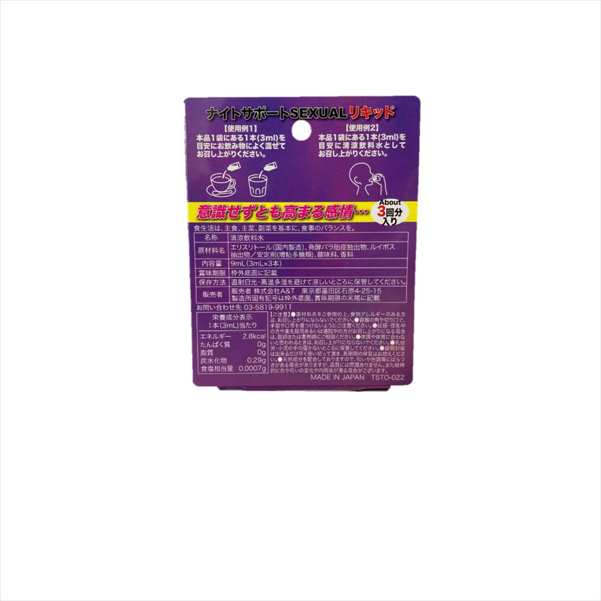 その一滴と香りがもたらす衝動的な欲求や感情…。気になる異性やパートナーの気持ちをぐっと自分へ引き寄せたい時!仲間達と特別な時間をさらに楽しみたい時に!リキッドは濃厚でイランイランとバラによるエキゾチックで独自の甘い香りが口の中に広がりさらにムードを高めます。ドリンクと混ぜて飲む場合は味や着色の変化がしづらい仕様になっており様々な飲み物とも相性が良いです。