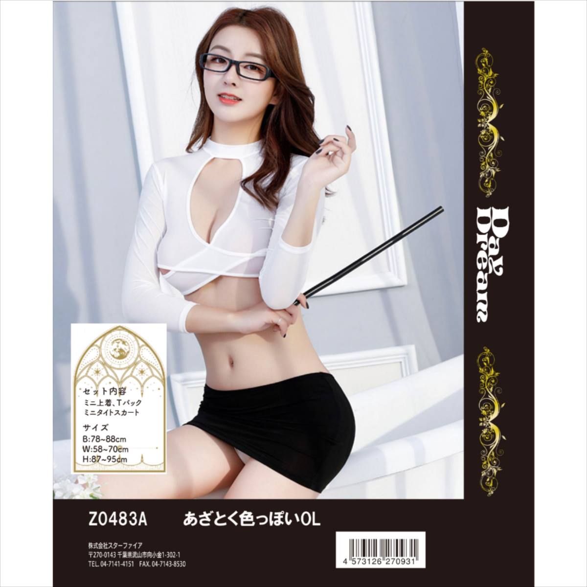 媚びない色気がプンプンするセクシーOLさん。胸元が大きくあいて程よく透けるピッタリ密着上着と28cm丈のタイトスカートでモテ系OLの完成。