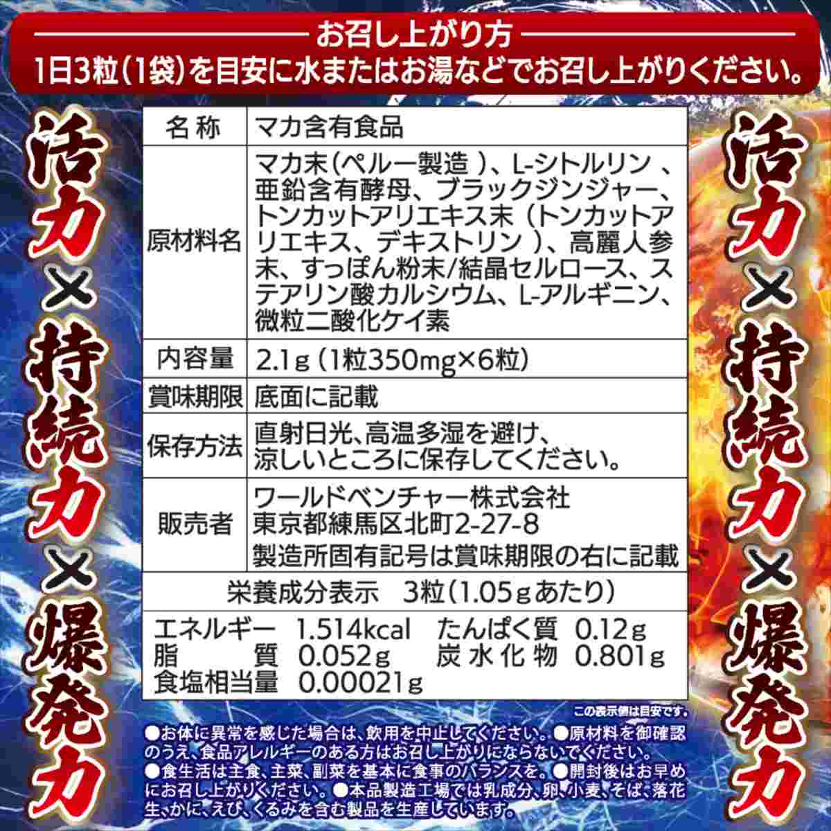 8種の活力成分を黄金バランスで融合したサプリメント。活力×持●力×爆発力で狂起乱舞!1日3粒を目安に水またはお湯でお召し上がりください。