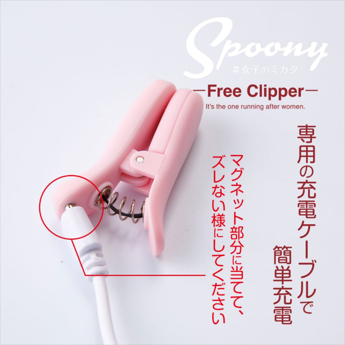 女性の好みを追求し誕生したSpoonyシリーズ。ポイントをしっかり挟む、小型のクリップ型ローターが登場。「女子のミカタ」を形にしました。このフリークリッパーはクリップ型のローターです。ポイントにしっかりとつまみ、振動を逃さず伝えます。つまむ力は強力ですが、優しい感触で痛みはほとんどありません。またソフトな肌触りと10種類(3段階の強弱と7パターンの振動)の振動を装備し、機能面でも充実しています。充電は付属のUSBケーブルで簡単・便利。使用後は水洗い可能な防水機能(IPX5)も完備し、清潔さを保ち続けます。ピンポイントで刺激を与えるクリップ型ローター、Spoonyフリークリッパー。女性へのプレゼントにもオススメです。