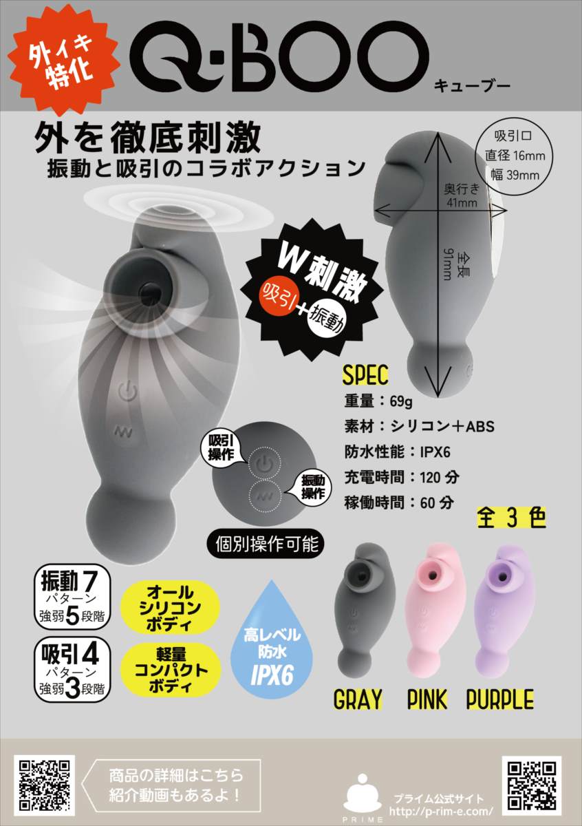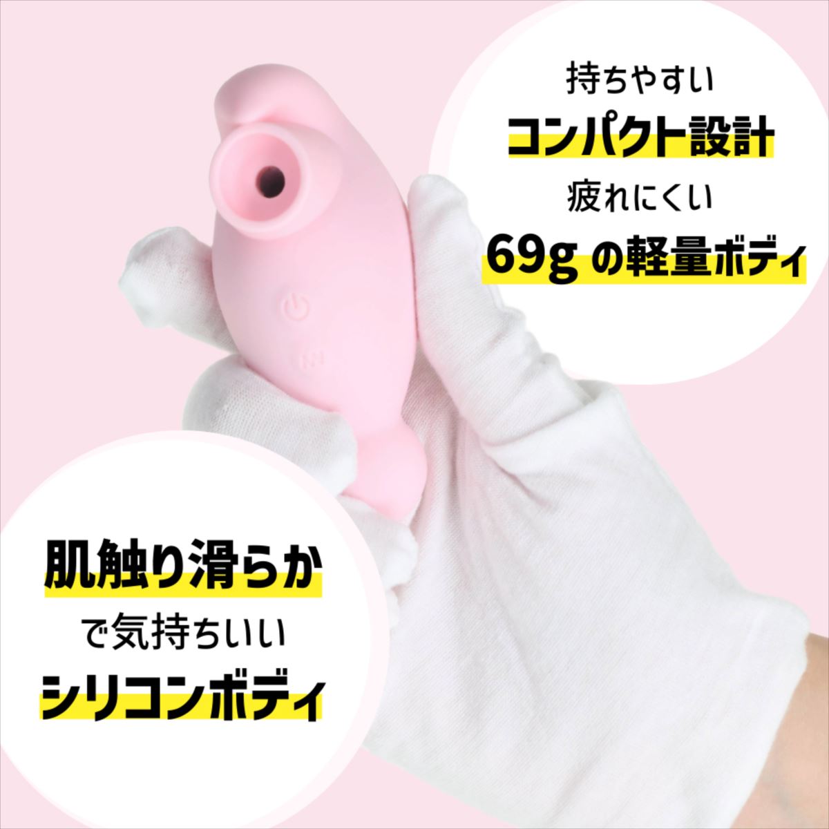 吸引しながら振動!2つのシゲキを同時に楽しめる外イキ特化グッズ。吸引口の上部にマイクロモーターを搭載する事で吸われながらブルブル刺激のWアクションを演出!吸引アクションは強弱3段階+4パターンの計7ファンクション、振動アクションは細かく調整できる強弱5段階+実用性の高い7パターンの計12ファンクション、さらに吸引と振動アクションをそれぞれパターン操作出来るのでお好みの組み合わせをチョイスして楽しむことができます。吸引口も真空刺激が伝わりやすい直径16mmに設計。本体サイズも全長10cm以下に抑えてコンパクトなため持ちやすく、重量も69gとかなり軽量なので手が疲れにくいです。プレイの邪魔をしない静音設計+使用後にしっかり洗えるIPX6の高レベル防水等級のため衛生的に長くお使い頂けます。120分の充電で最大60分の連続使用が可能(使用環境により大幅に増減します。)滑らかで肌心地の良いシリコンボディと使いやすさと実用性を両立させた外責め専用グッズです。